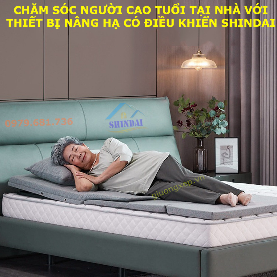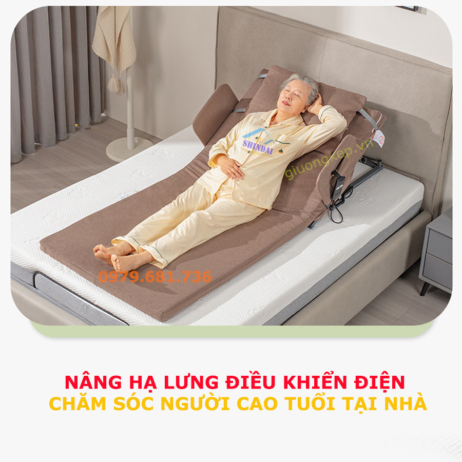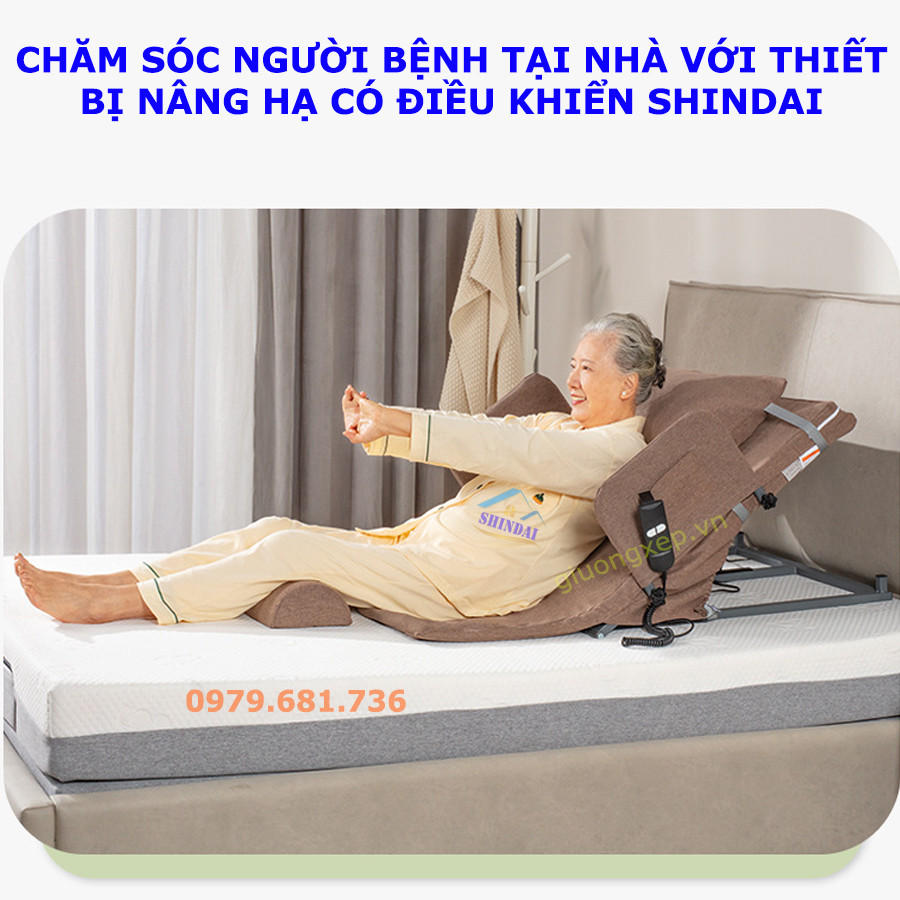 thiết bị nâng lưng, chăm sóc người thân, hỗ trợ bệnh nhân, thiết bị giường bệnh, giường bệnh thông minh, shindai vietnam, người già yếu, nâng hạ tự động, giường chăm sóc,