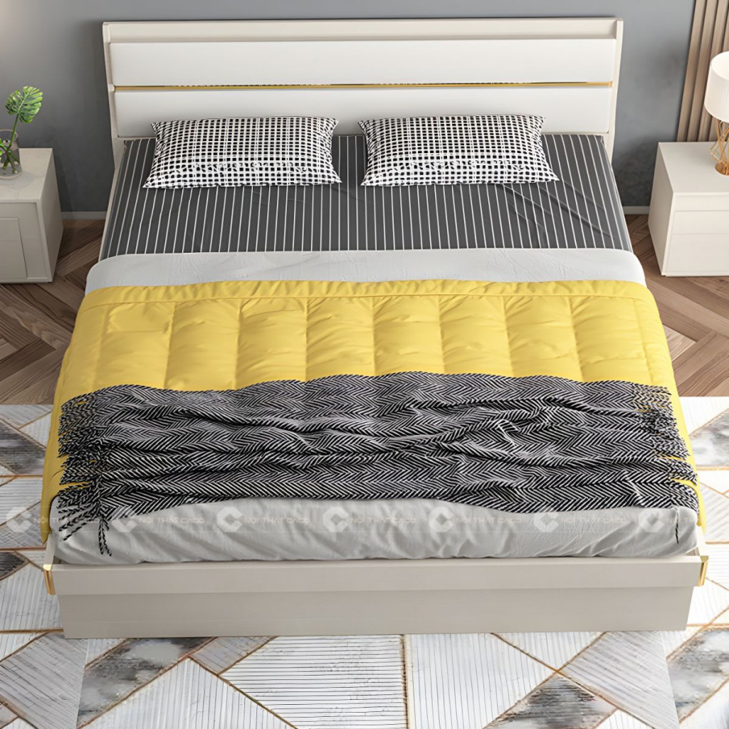 Giường Ngủ Gỗ Công Nghiệp Bọc Nệm Đầu Giường Màu Trắng
