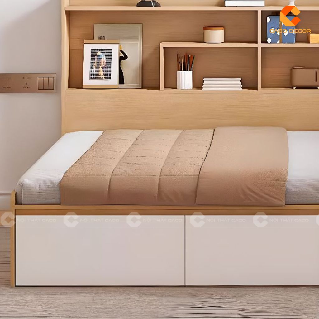 Giường Ngủ Gỗ Công Nghiệp Có Kệ Đầu Giường Và Hộc Kéo
