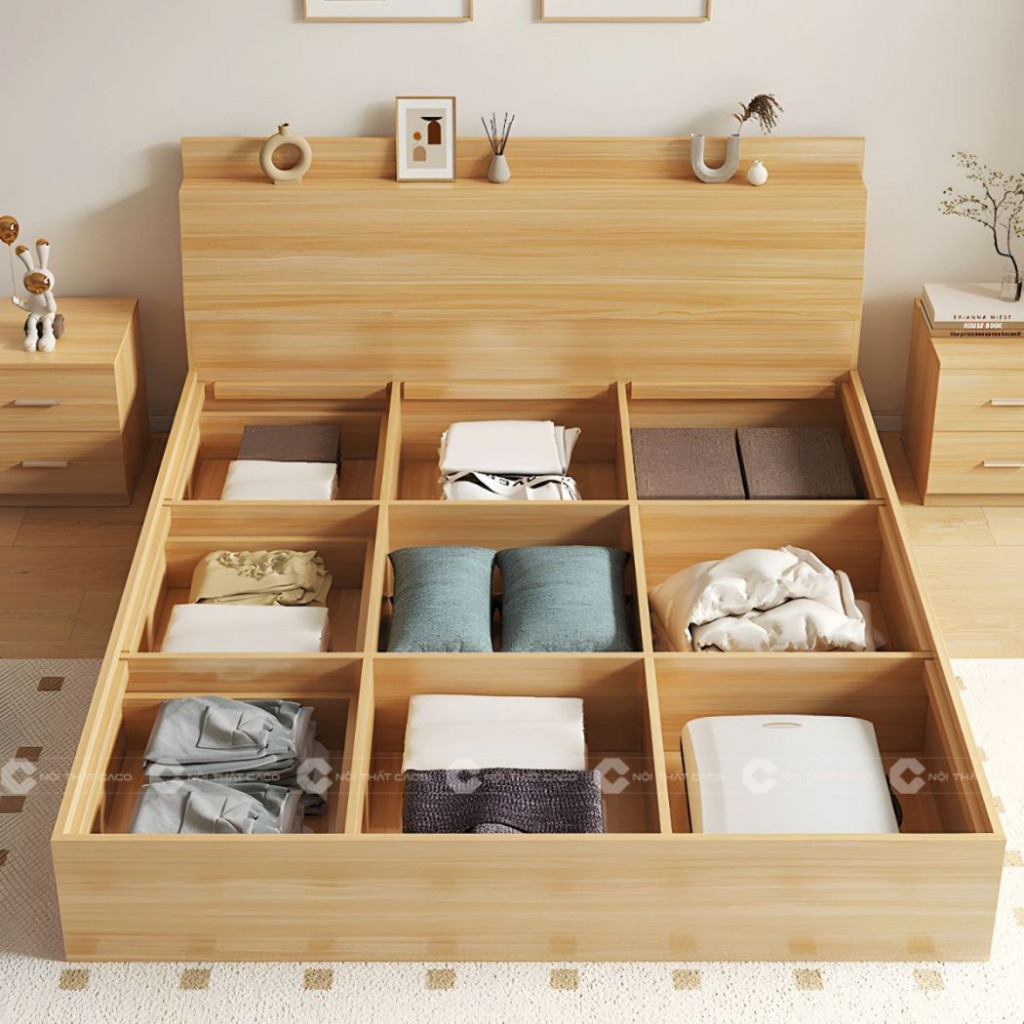 Giường Ngủ Gỗ Công Nghiệp Màu Vàng Vân Gỗ