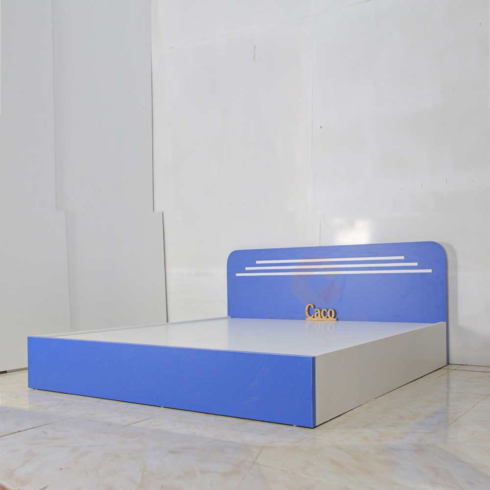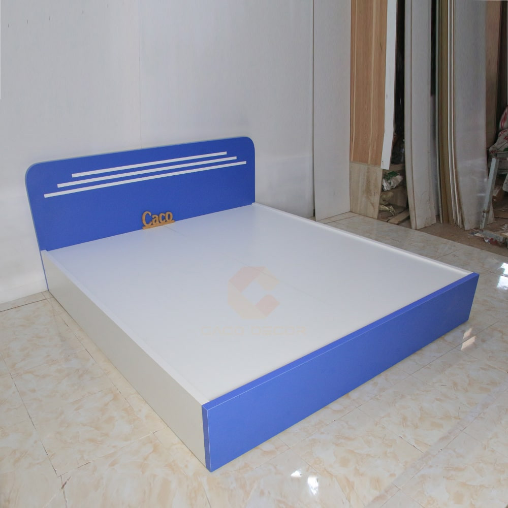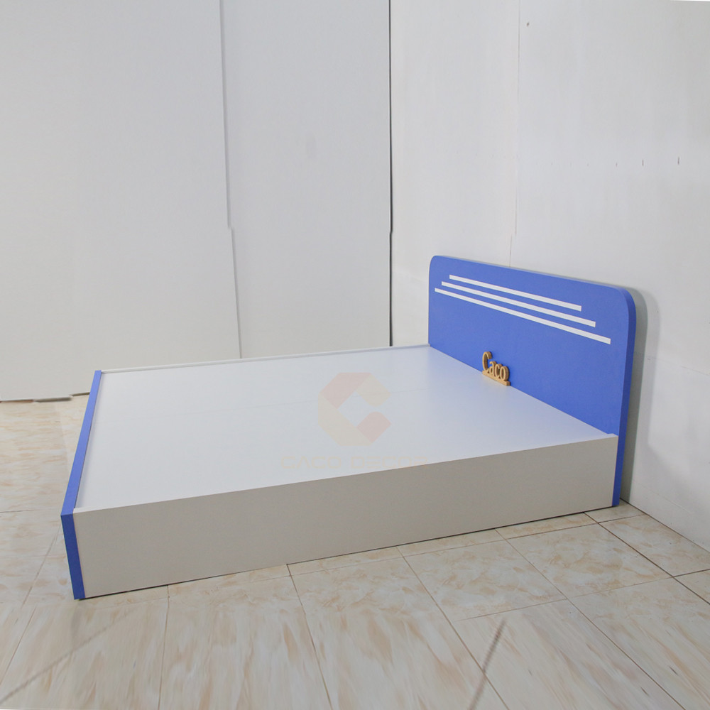 Giường Ngủ Gỗ MDF Melamine Màu Trắng Phối Xanh Bo Góc Cao Cấp