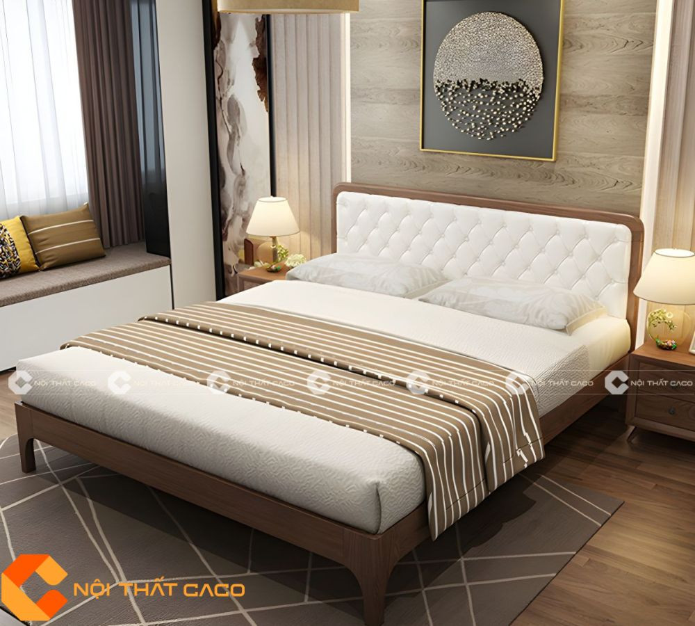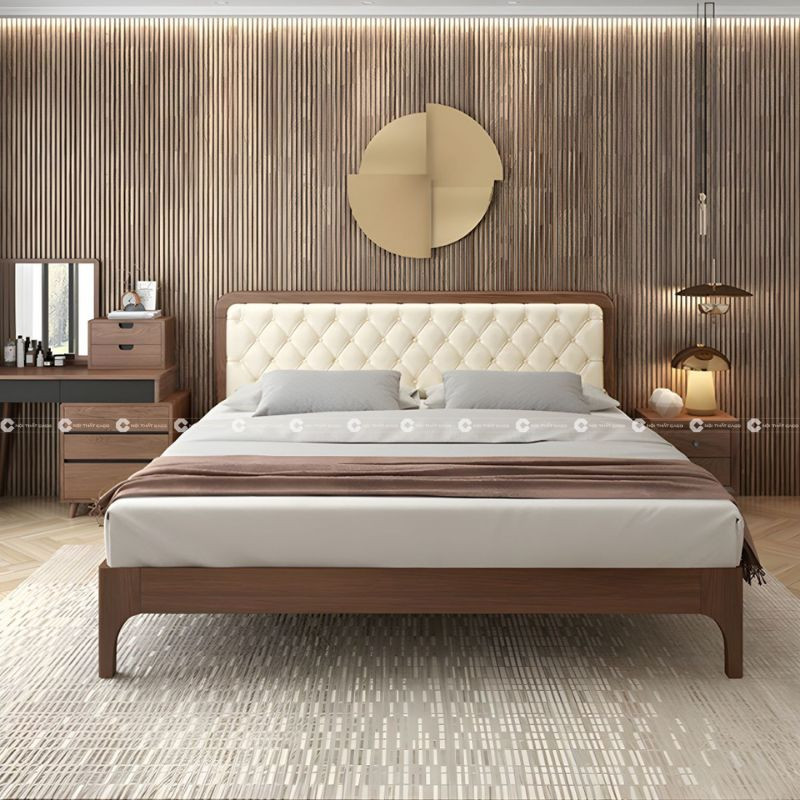 "Giường ngủ gỗ sồi tự nhiên kết hợp bọc đầu nệm mang vẻ đẹp mộc mạc nhưng đậm chất sang trọng. Gỗ đạt chuẩn chất lượng, nổi bật với độ bền vượt trội và chống cong vênh hiệu quả. Đây là lựa chọn lý tưởng cho những gia chủ muốn sở hữu mẫu giường ngủ vừa bền chắc vừa giữ được giá trị thẩm mỹ lâu dài