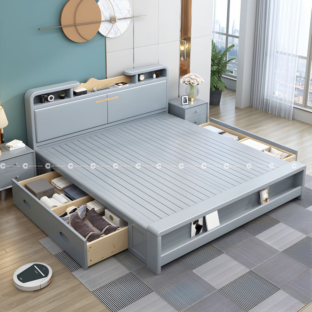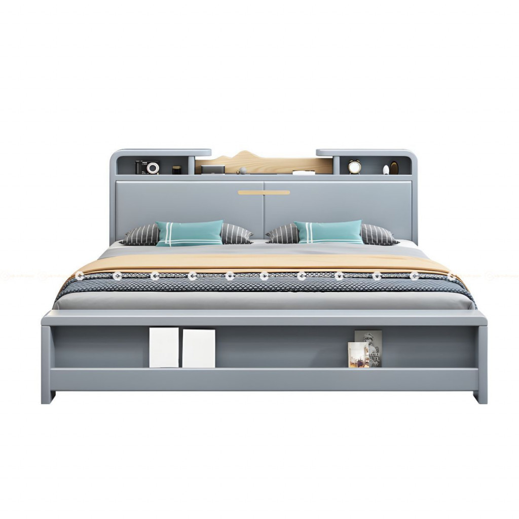 Giường Ngủ Gỗ Sồi Tự Nhiên Kết Hợp Kệ Đầu Giường Tiện Lợi
