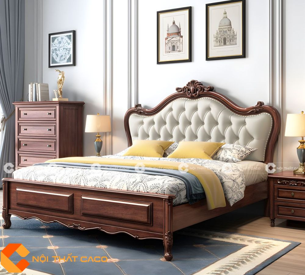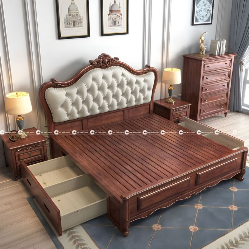 Giường Ngủ Gỗ Sồi Tự Nhiên Phong Cách Cổ Điển
