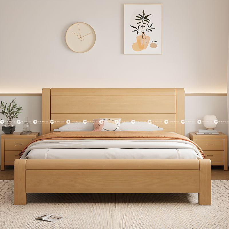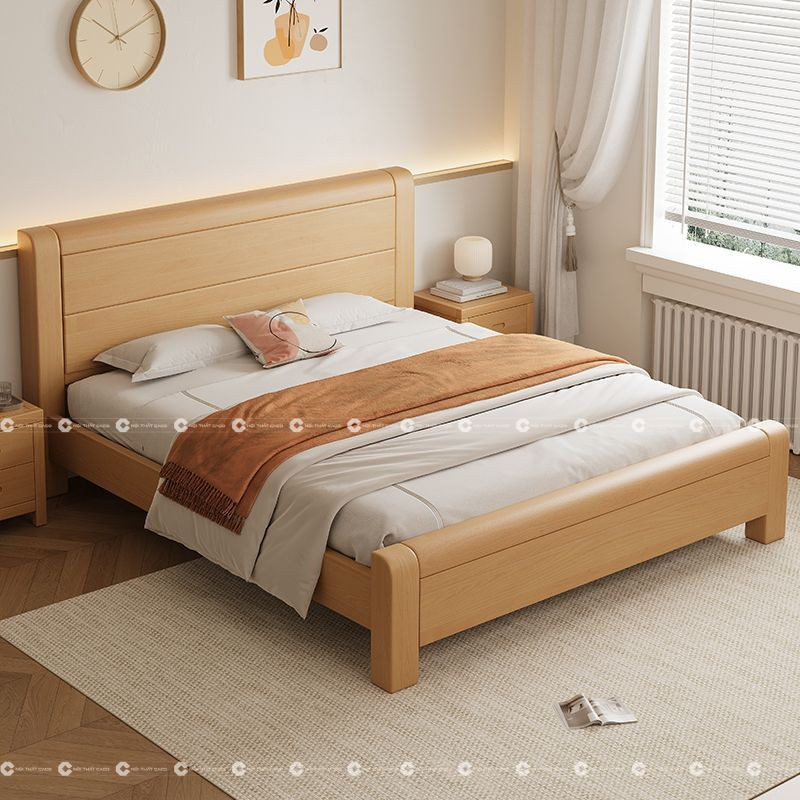 Giường Ngủ Gỗ Sồi Tự Nhiên Thiết Kế Chân Cao Bền Bỉ, Đẳng Cấp