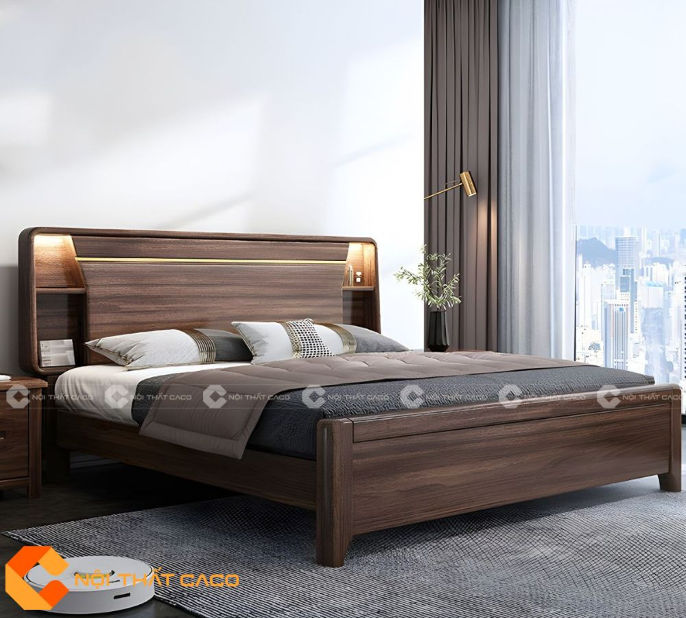 Giường Ngủ Gỗ Tự Nhiên Màu Nâu Vân Gỗ Đậm