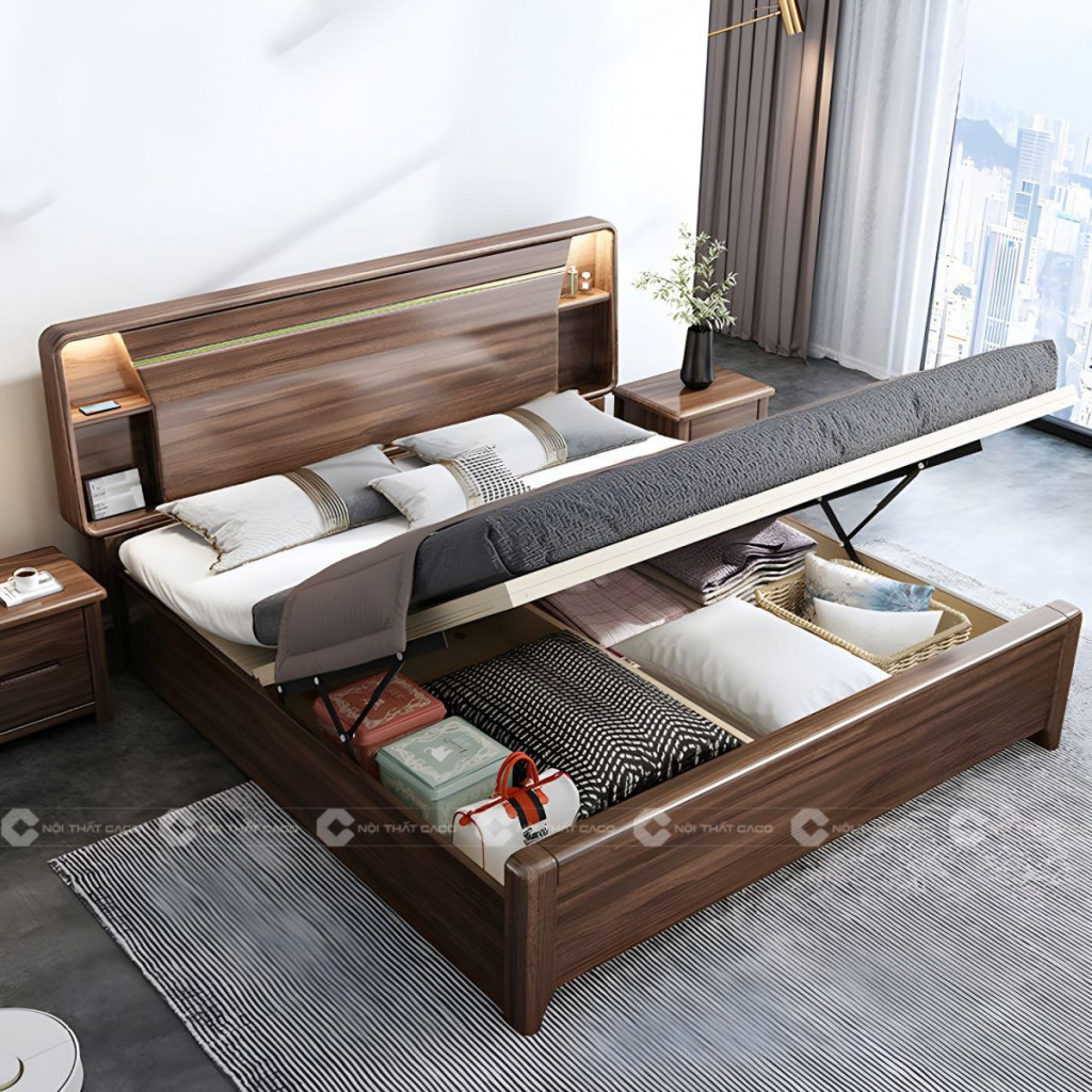 Vẻ đẹp tự nhiên kết hợp cùng tông màu nâu sang trọng tạo nên một không gian nghỉ ngơi thư thái, ấm cúng và đầy gu thẩm mỹ. Đây là lựa chọn lý tưởng cho những ai muốn đầu tư vào một chiếc giường gỗ tự nhiên có giá trị lâu dài.