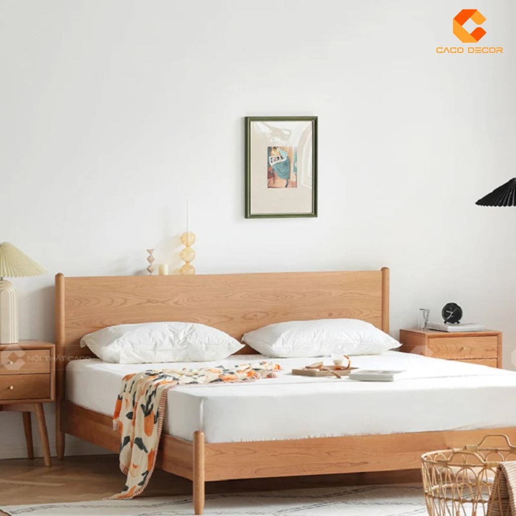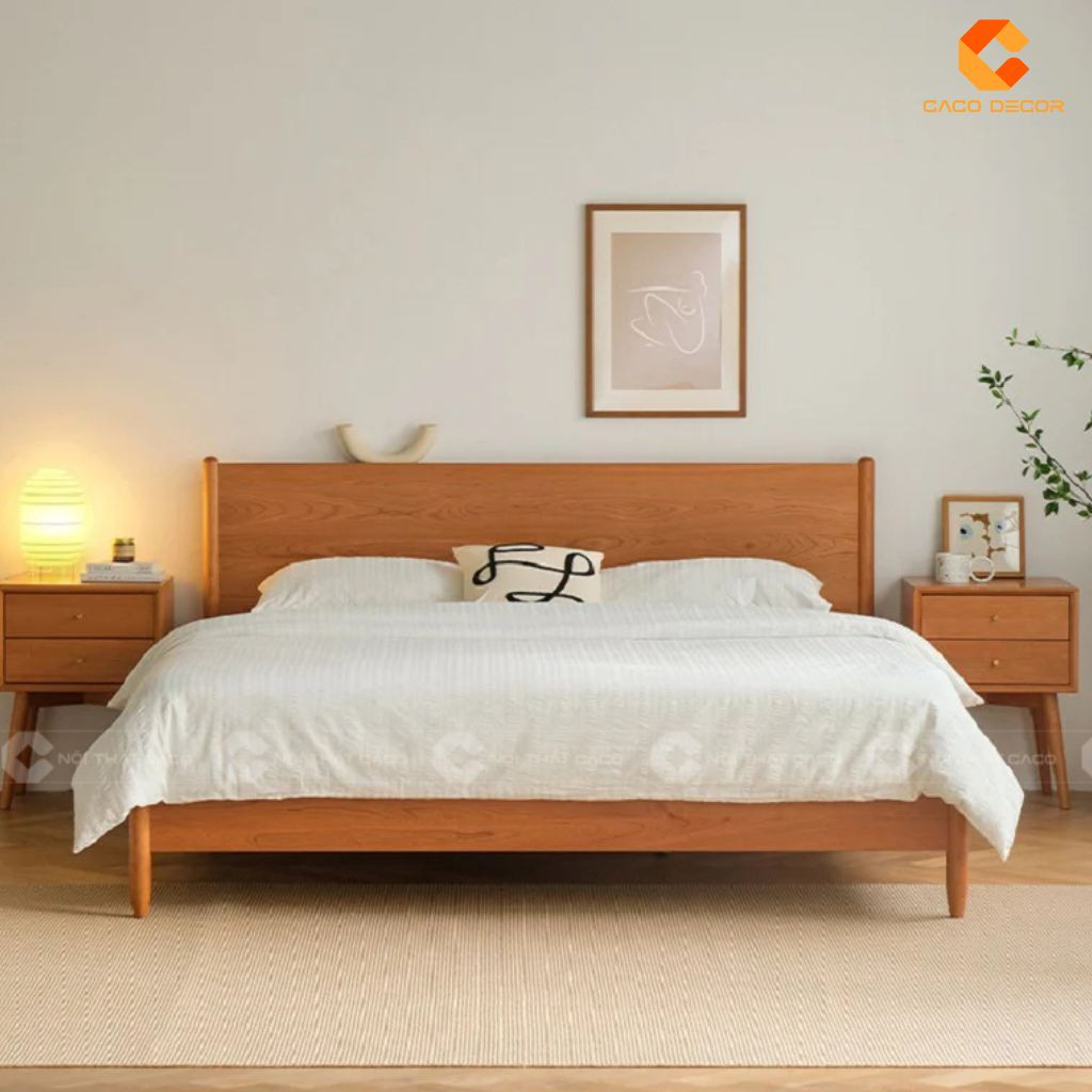 Giường Ngủ Gỗ Tự Nhiên Thiết Kế Chân Cao Hiện Đại