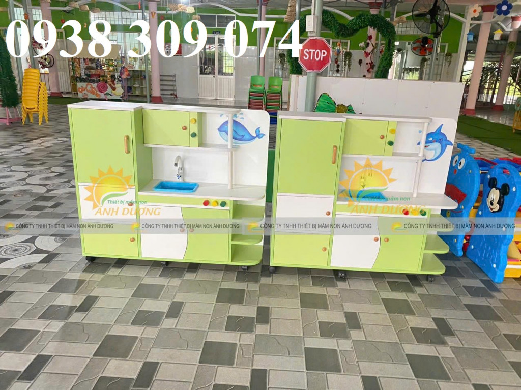 Kệ đựng đồ chơi học liệu bao gồm : kệ bếp nhà trẻ mầm non, kệ bác sĩ mầm non, kệ học tập mầm