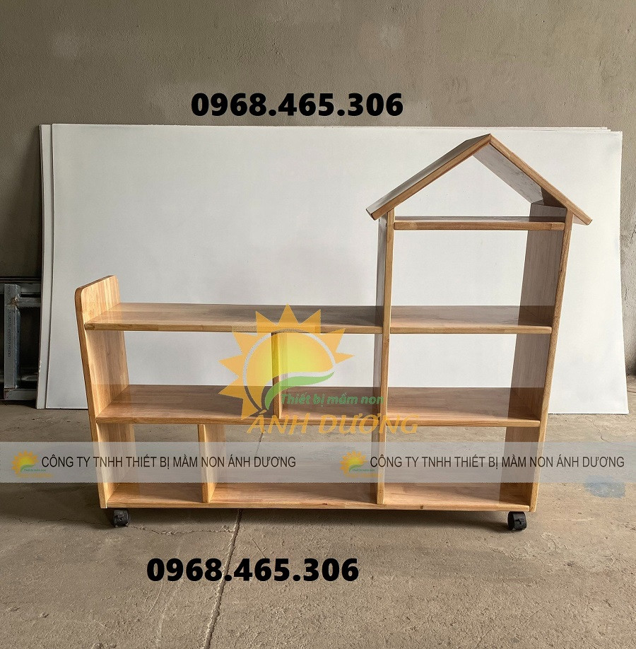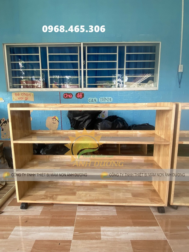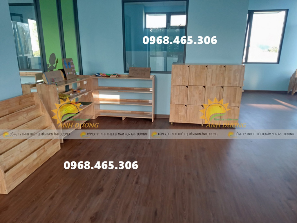 Kệ gỗ mầm non nhiều màu, kệ gỗ nhà trẻ mẫu giáo