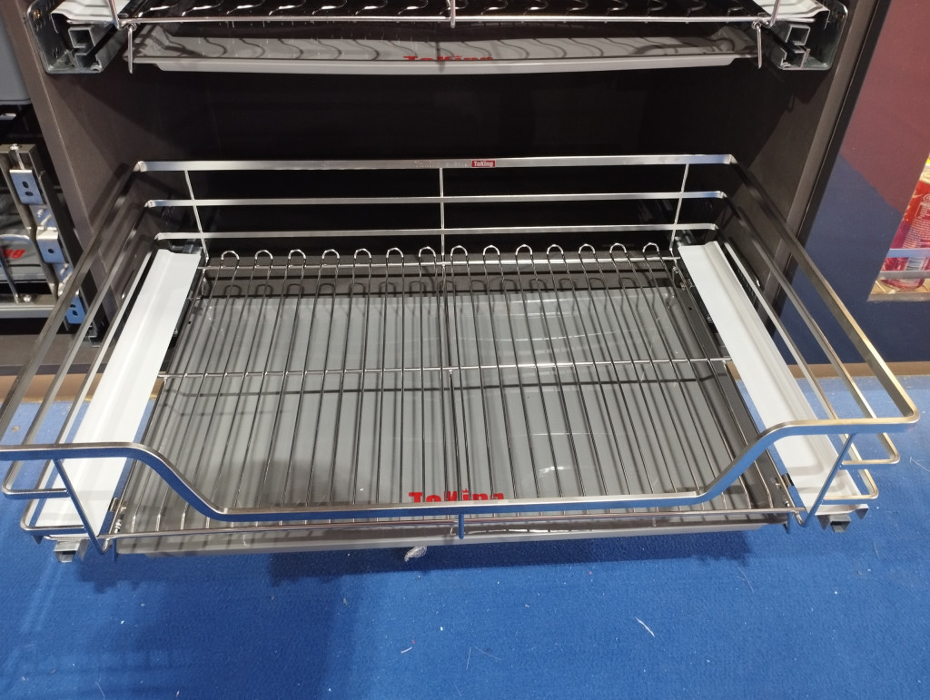 Kệ xoong nôi nan dẹt TaKing còn sử dụng hệ thống ray trượt giảm chấn nên kéo mở dễ dàng và không gây ra tiếng ồn ảnh hưởng tới các hoạt động xung quanh khi sử dụng.