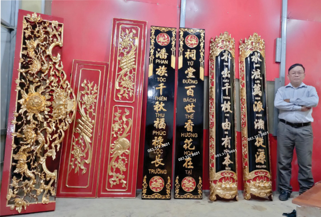 - Làm hoành phi câu đối gỗ, làm hoành phi câu đối thờ gia tiên, làm hoành phi câu đối nhà từ đường, làm hoành phi câu đối nhà thờ họ,