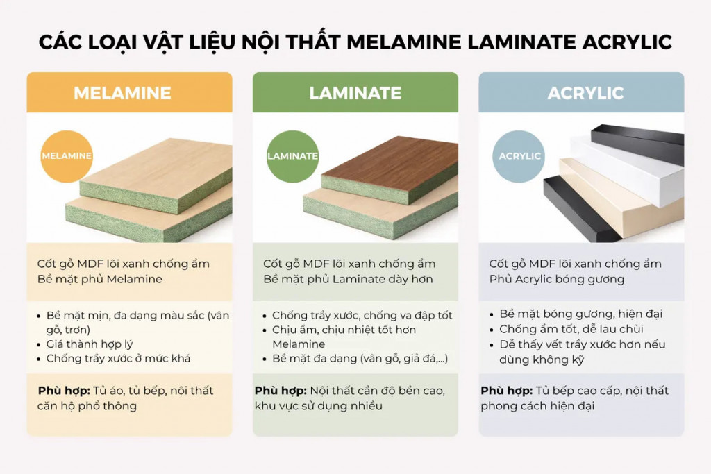 ✔ Chất liệu sử dụng (gỗ công nghiệp, gỗ tự nhiên…)