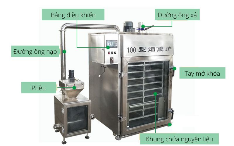 Lò xông khói xúc xích 100kg - làm chín & tạo màu chuẩn
