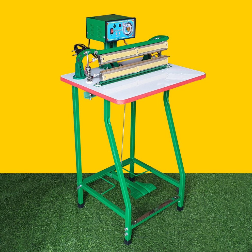 Máy hàn miệng túi được sử dụng bằng thao tác nhấn chân và sản phẩm được đặt lên bàn làm tăng năng suất hàn miệng túi sản phẩm