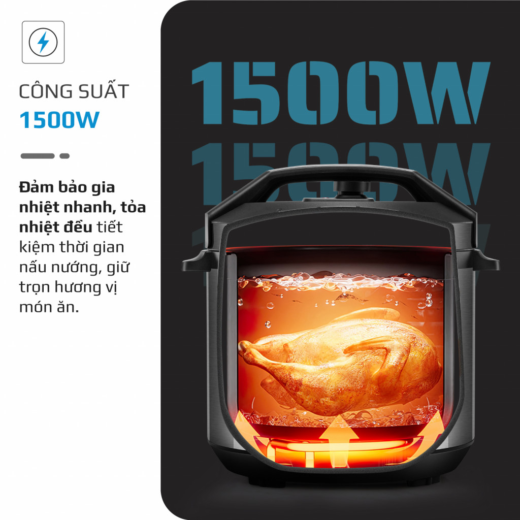 Công năng: Linh hoạt sử dụng nấu áp suất với các món hấp, hầm, cần ninh nhừ,... và sử dụng nấu không áp suất với các món xào, nướng, đun sôi,...