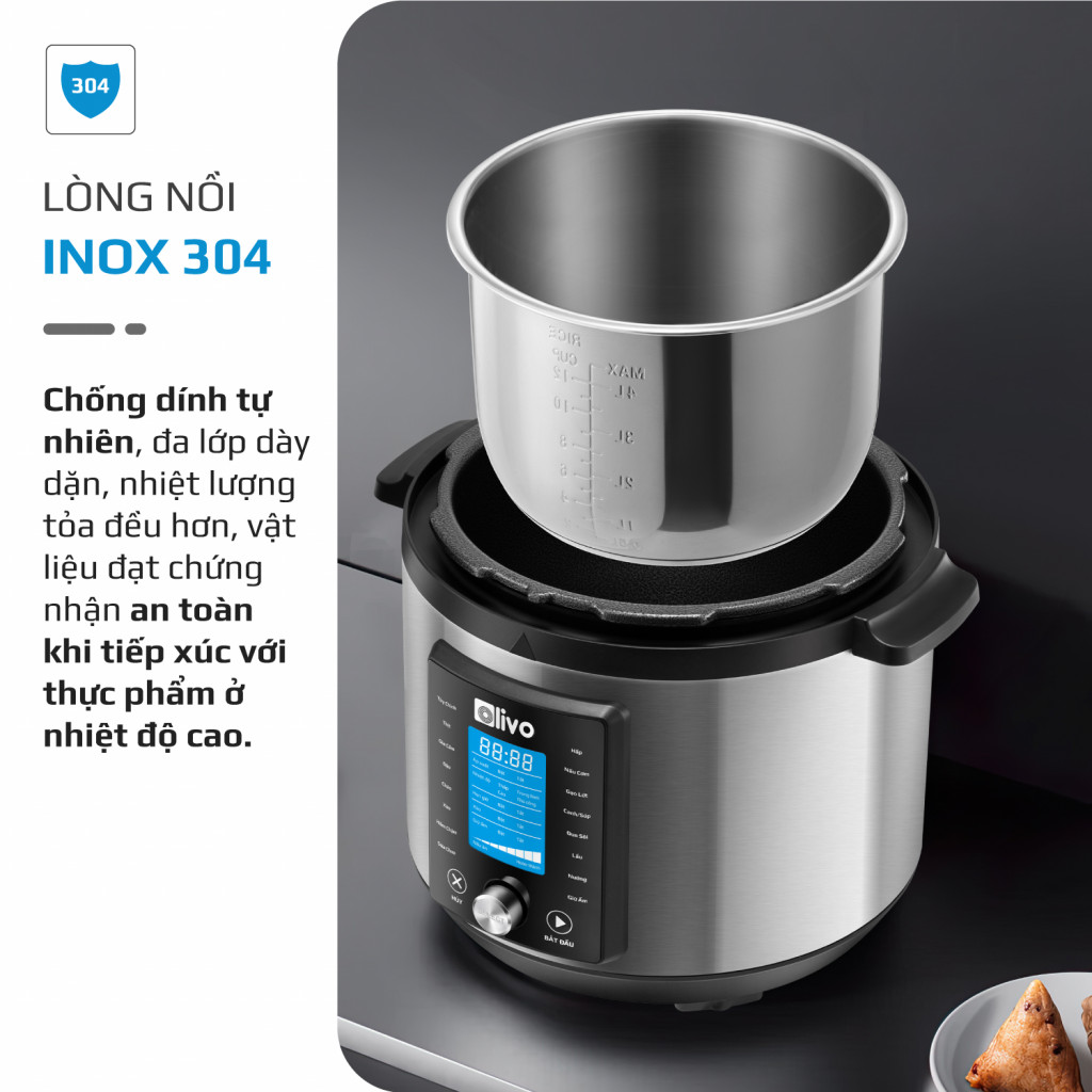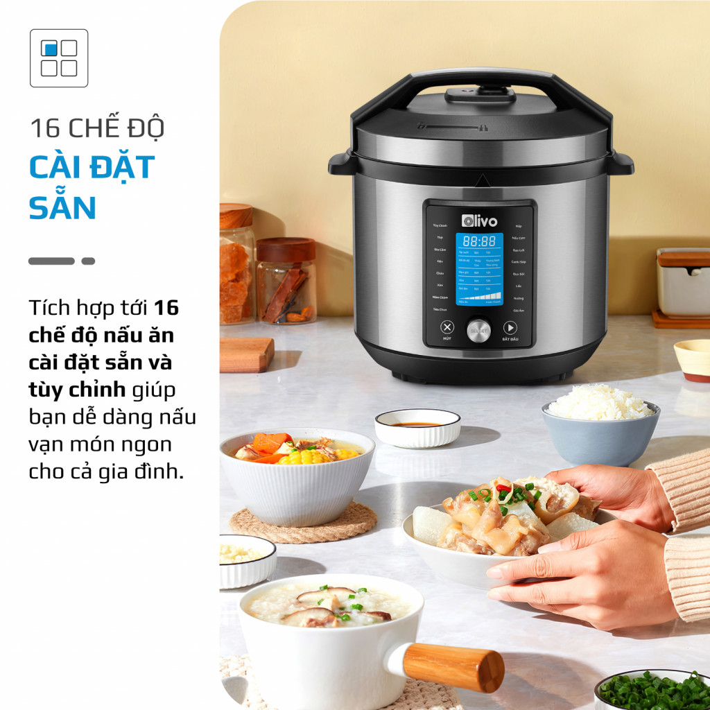 Tên sản phẩm: Nồi Áp Suất Điện Đa Năng OLIVO PC680 - Màn Hình OLED Hiện Đại, Lòng Nồi INOX 304, Đa Chức Năng 16 Chế Độ Cài Sẵn, Dung Tích 6L, Công Suất 1500W