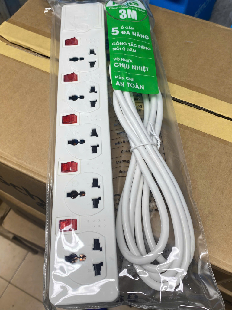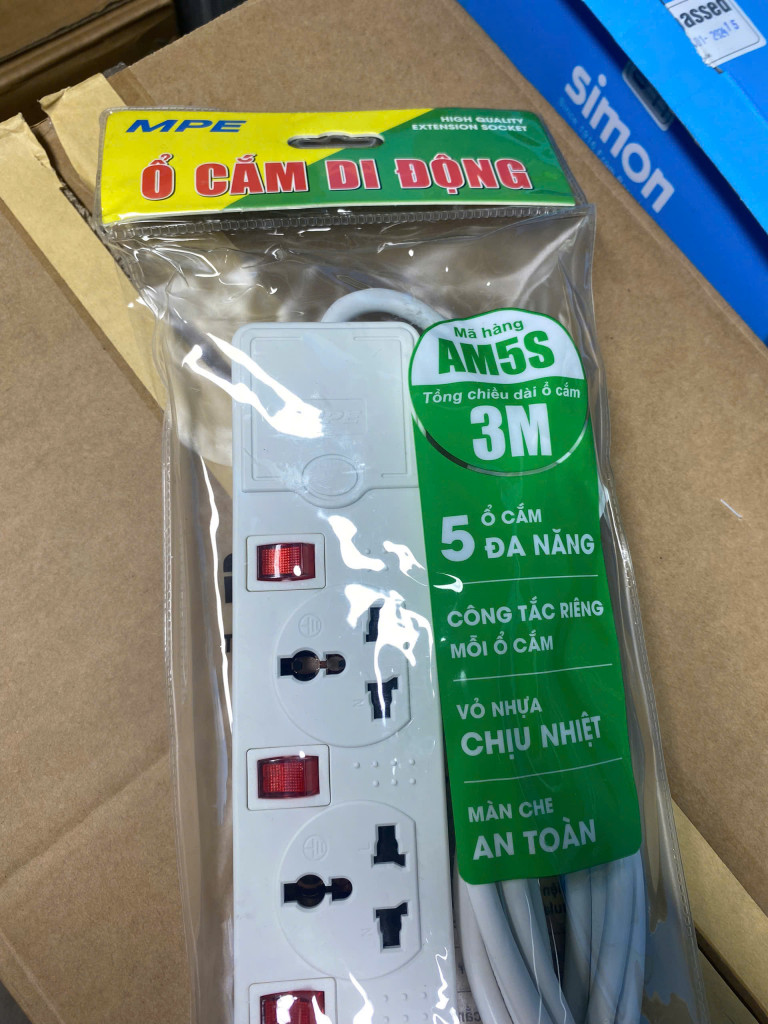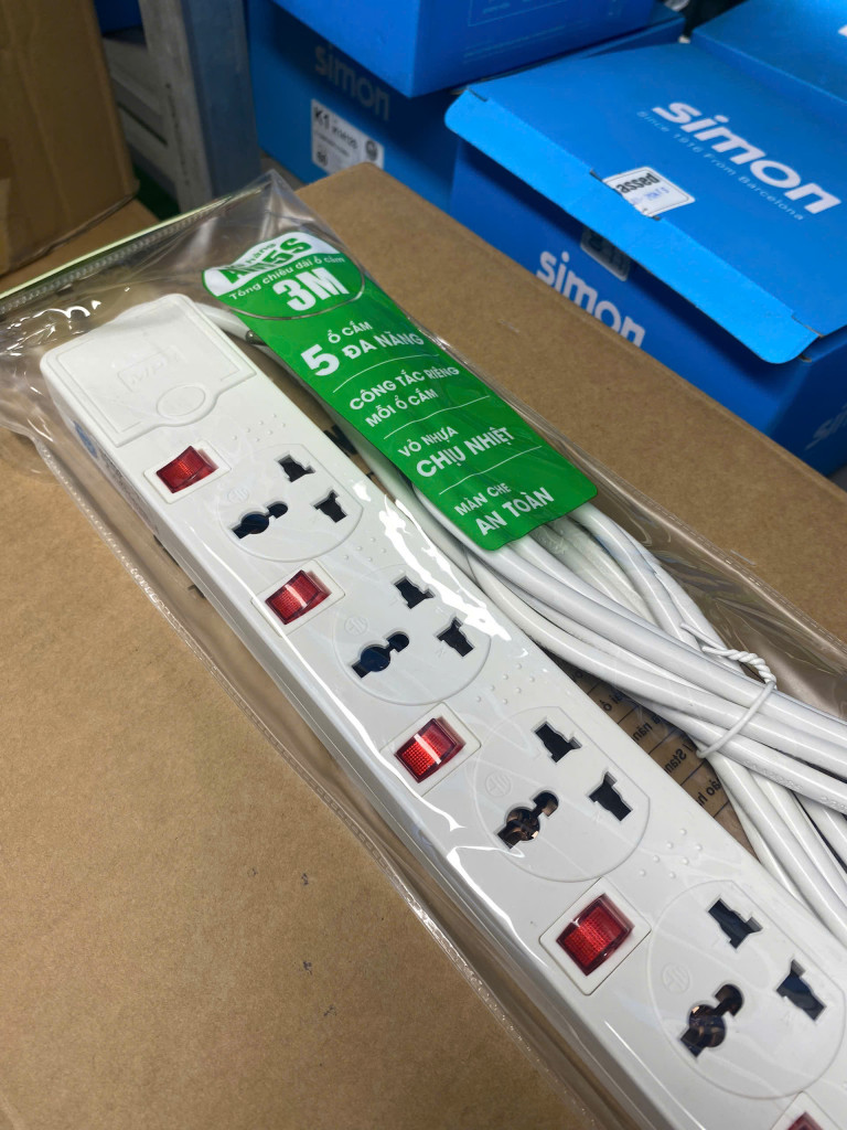 Ổ Cắm Điện MPE 5 Chấu – Dây 3 Mét, Công Suất 2500W