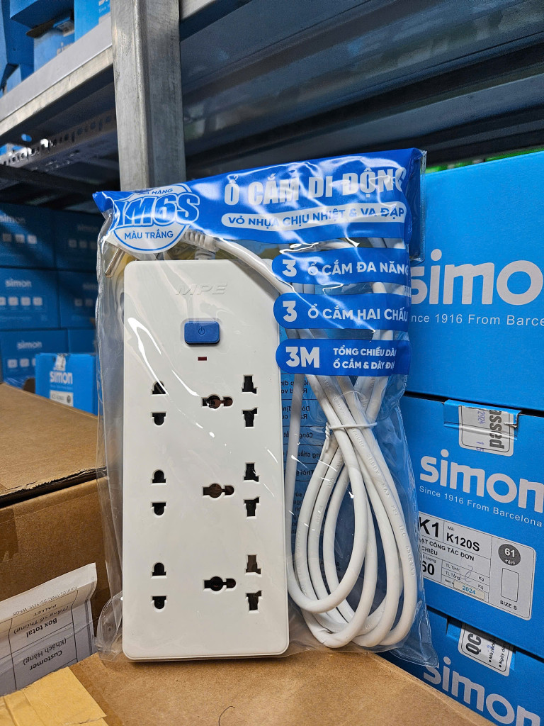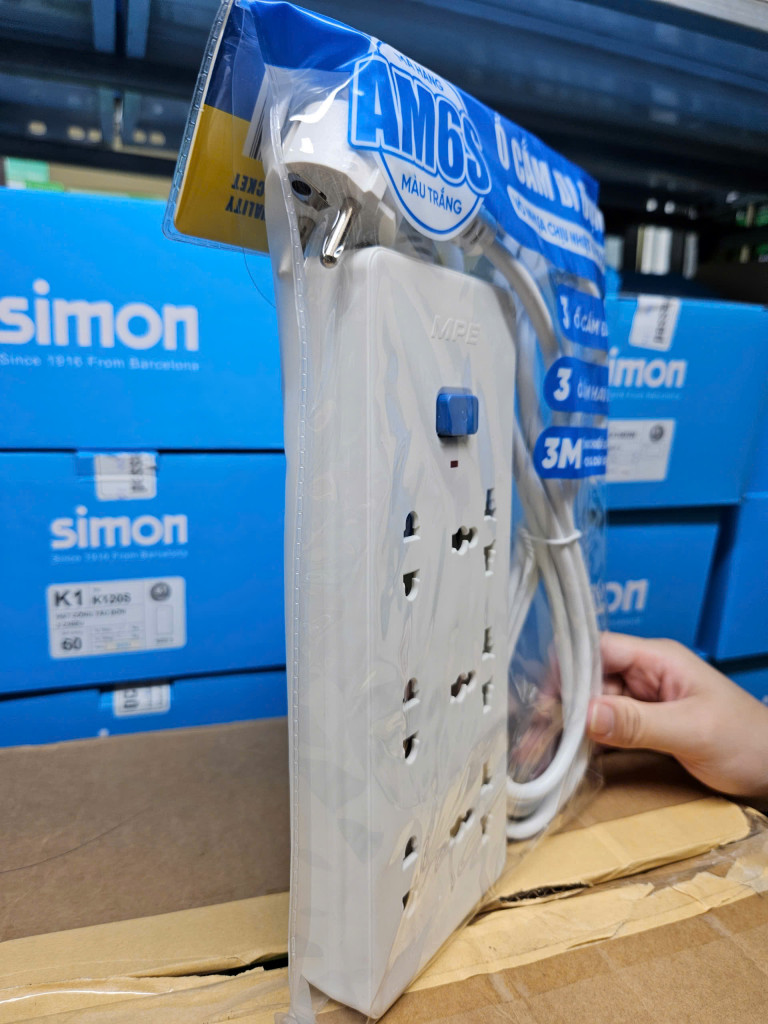 Ổ Cắm Điện MPE – 6 Ổ Cắm, Dây 3 Mét, Có Công Tắc Riêng