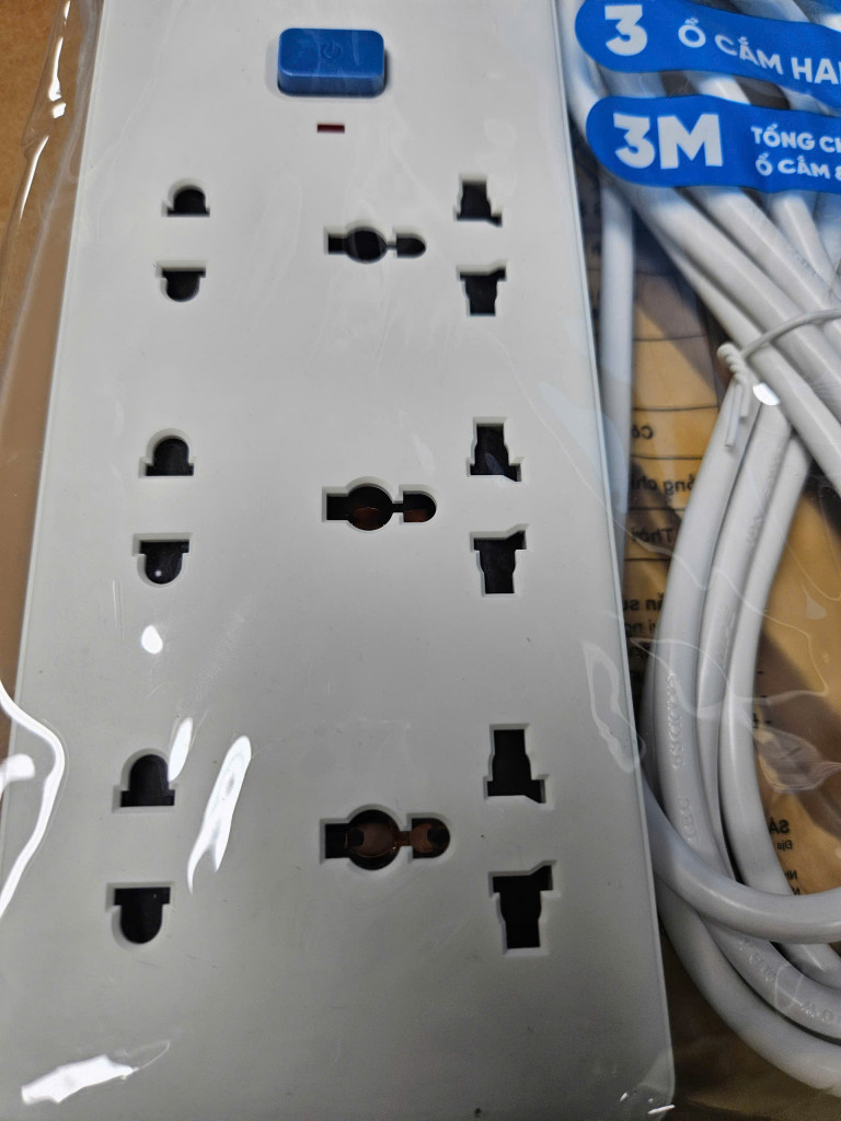 Thiết kế: 6 ổ cắm đa năng (2 & 3 chấu), có công tắc riêng cho từng ổ.