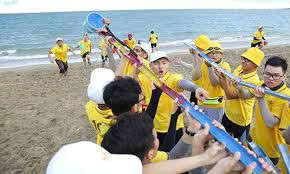 Đưa nước về nguồn là trò chơi team building được nhiều đơn vị tổ chức lựa chọn trong mỗi dịp đi biển, đi suối ,