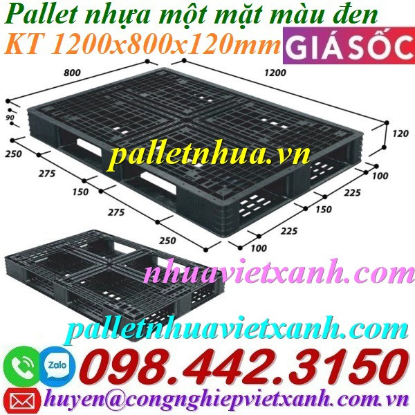 Pallet nhựa 1200x800x120mm màu đen hàng mới