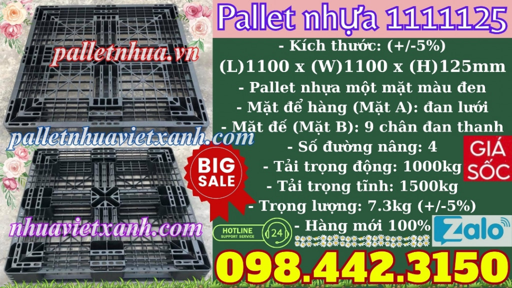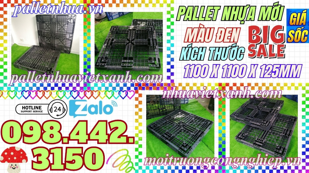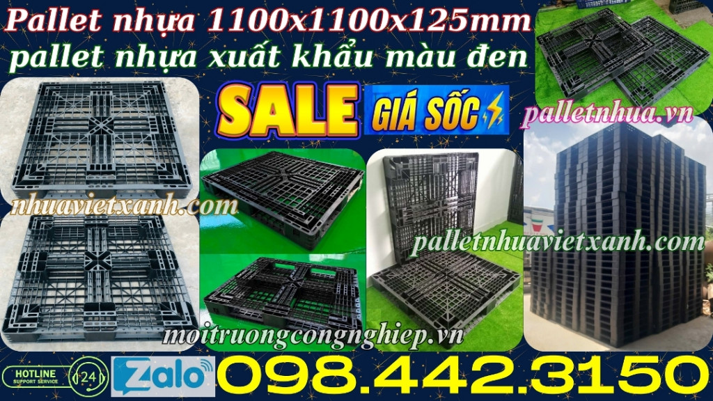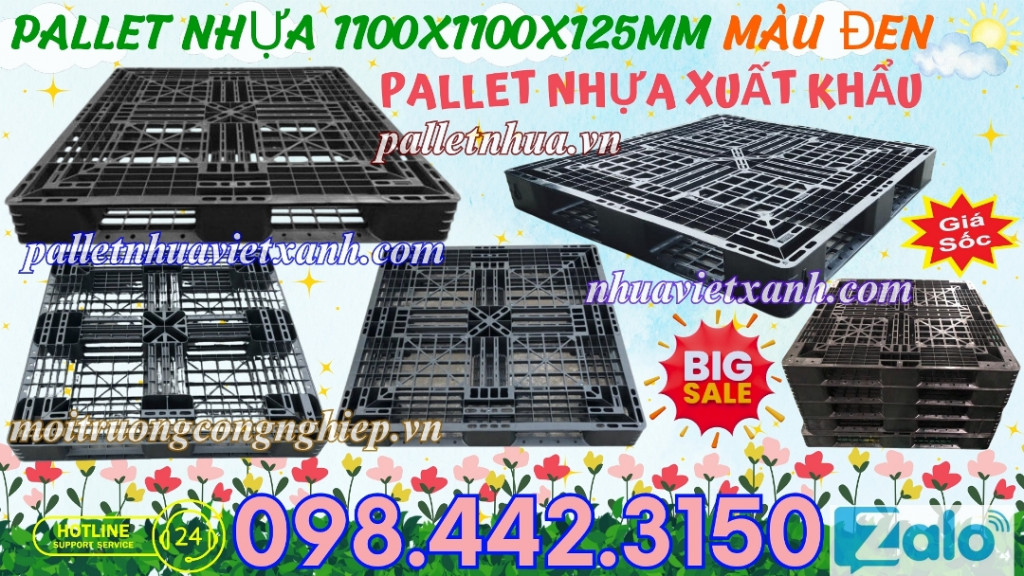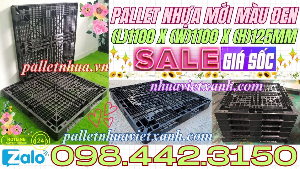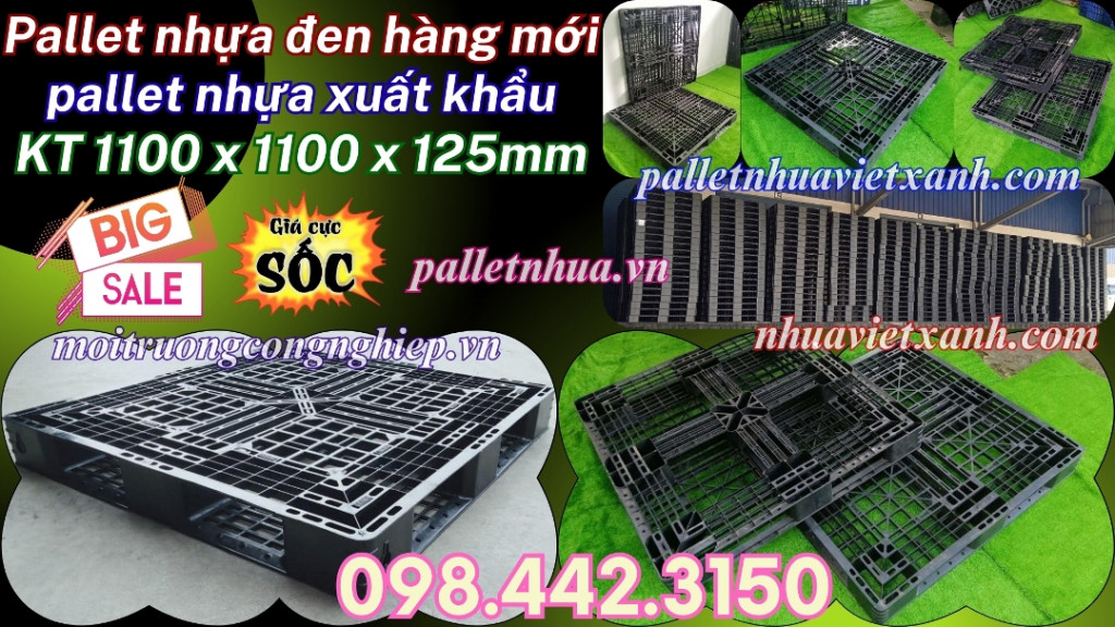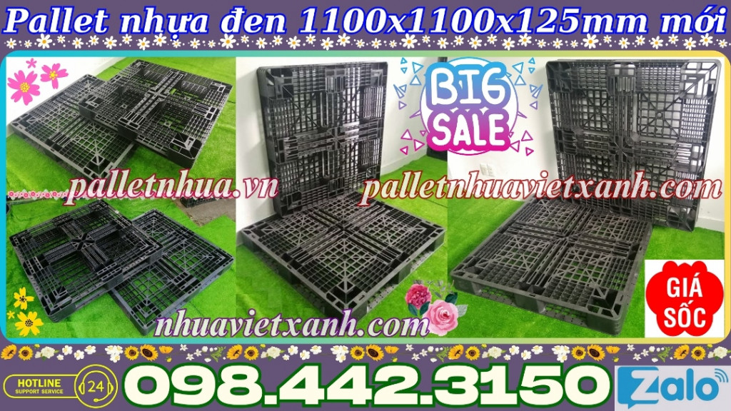 Pallet nhựa đen 1100x1100x125mm hàng mới 100% thanh lý giá rẻ call 0984423150 Huyền