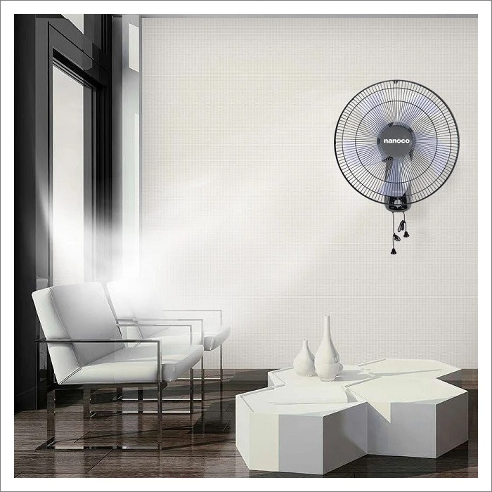 Quạt treo tường Nanoco NWF1604G - Kiểu dáng sang trọng, thiết kế treo tường tiết kiệm không gian, 3 cánh quạt lớn với công suất 47 W có khả năng làm mát nhanh trên diện tích rộng.
