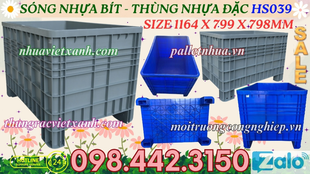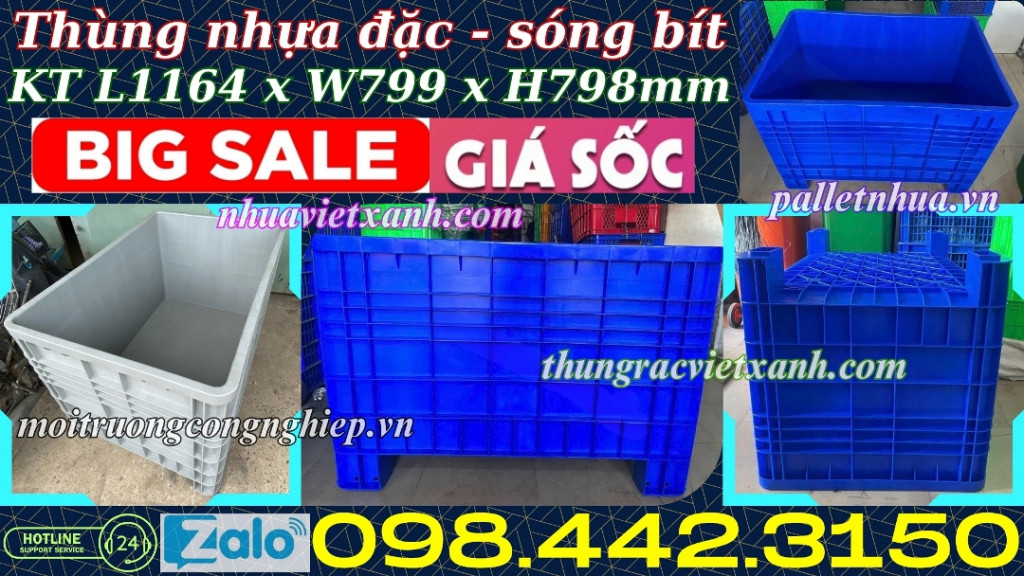- Thùng nhựa đặc/sóng nhựa bít có 4 chân trụ