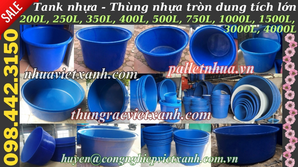 *. Thùng nhựa tròn dung tích lớn - thùng nhựa dung tích lớn - tank nhựa thường được sử dụng nhiều trong ngành thủy hải sản, ngành xây dựng hay trong đời sống...để chứa nước, đựng nước, trồng rau, nuôi cá, nuôi tôm, nuôi lươn, nuôi ốc, nuôi cá Koi, làm bể bơi,...và với đặc điểm lớn nhất là kháng acid, kháng kềm, không tan trong dung môi và không phân cực nên thùng còn được dùng để đựng hóa chất, dung môi, thuốc nhuộm vải,...Ngoài ra thùng còn được dùng rất nhiều trong Hệ thống Aquaponics - rau xanh cá sạch.