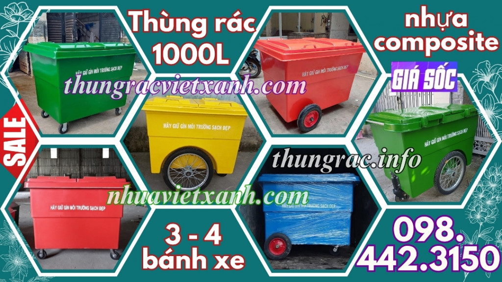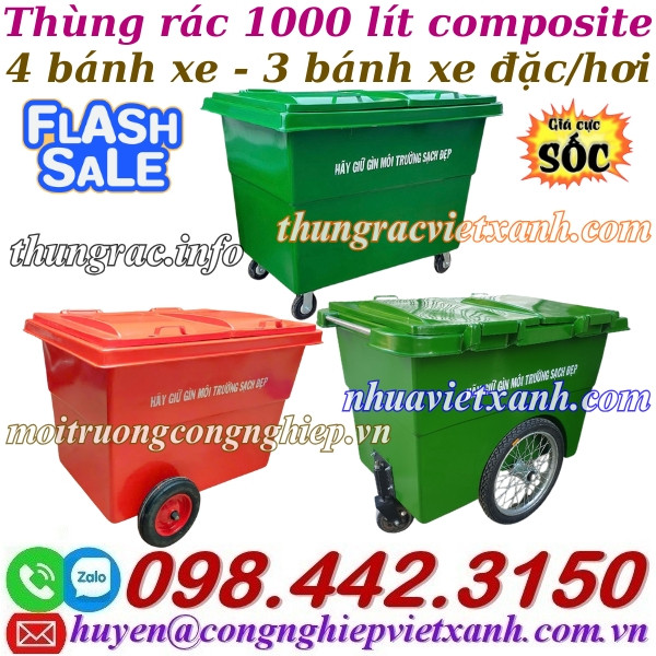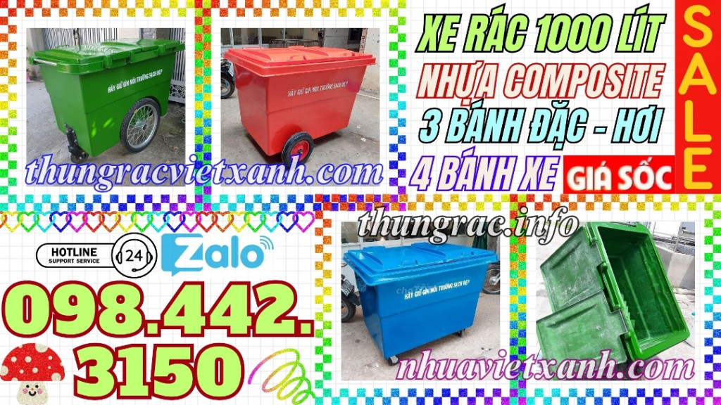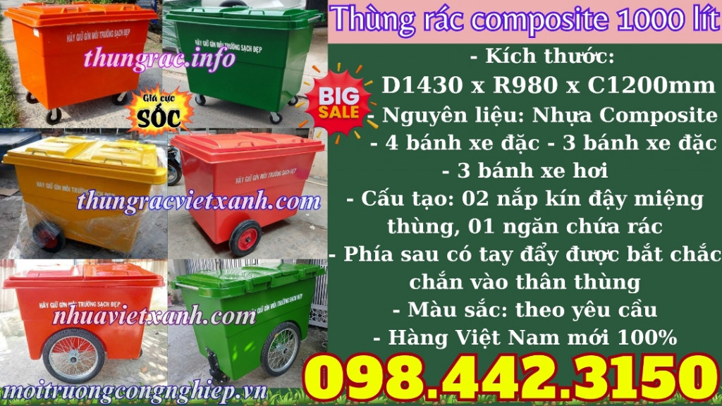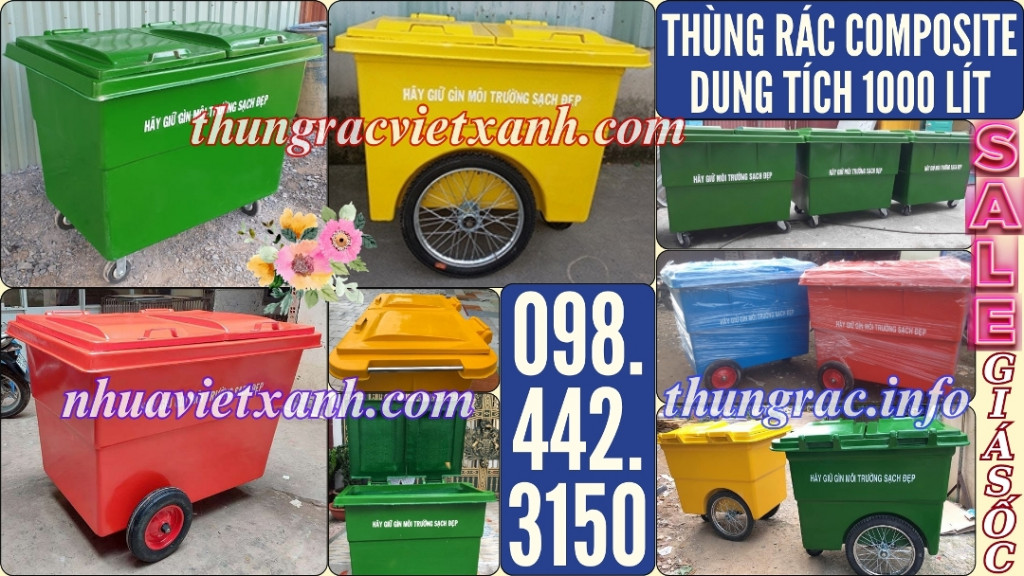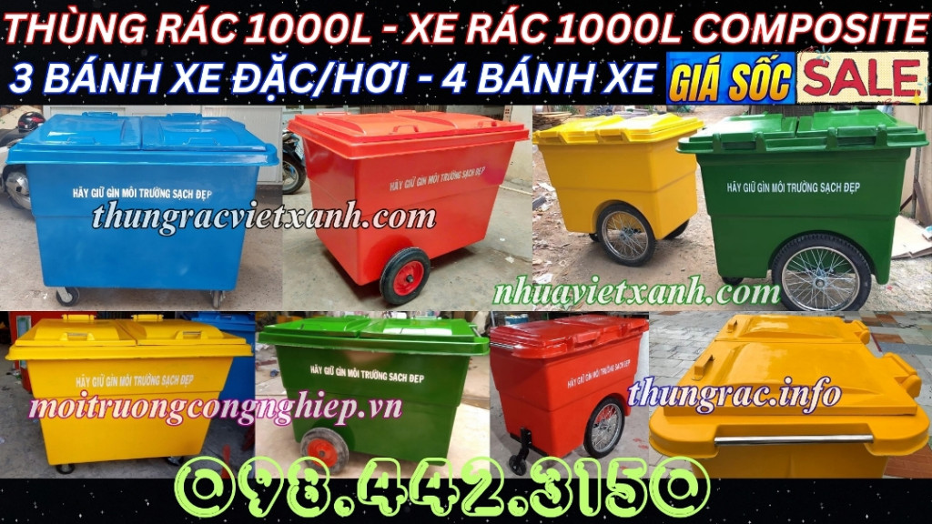 - Thùng rác 1000 lít - xe rác 1000 lít - xe đẩy rác 1000 lít - xe thu gom rác 1000 lít - xe gom rác 1000 lít nhựa composite có dung tích lớn để thu gom rác từ những thùng rác nhỏ và vận chuyển điểm tập kết. Thích hợp đặt ở nơi thu gom rác tập trung của chung cư, cao ốc, khuôn viên khu công nghiệp, nhà máy, công viên, khu vui chơi giải trí, các khu du lịch, trường học, bệnh viện, nhà hàng khách sạn, trung tâm thương mại, siêu thị, nơi công cộng…