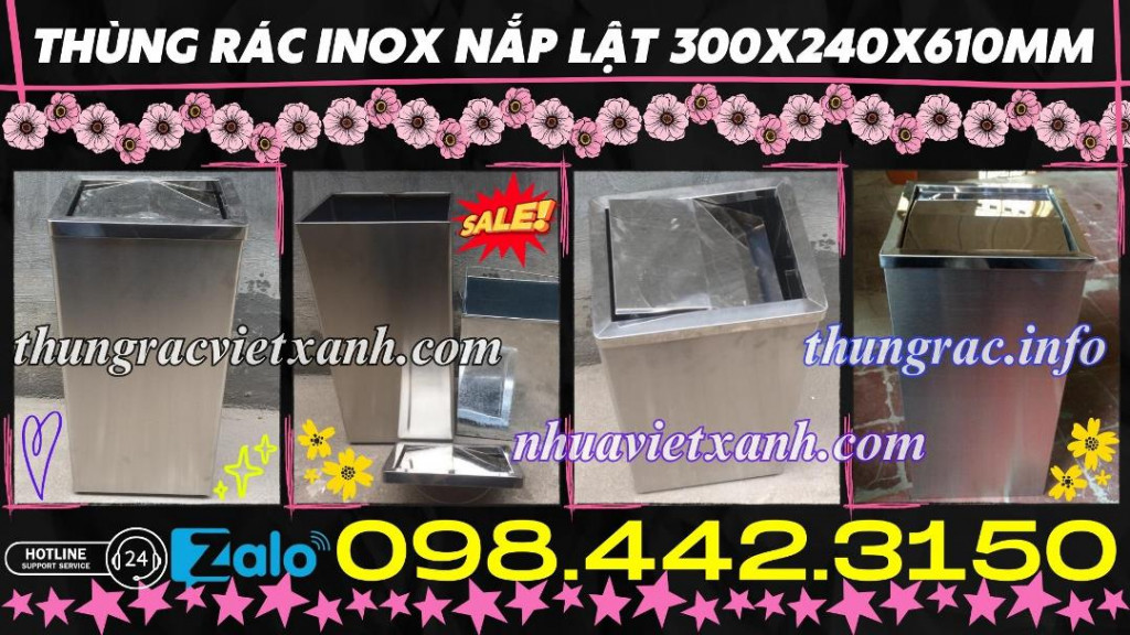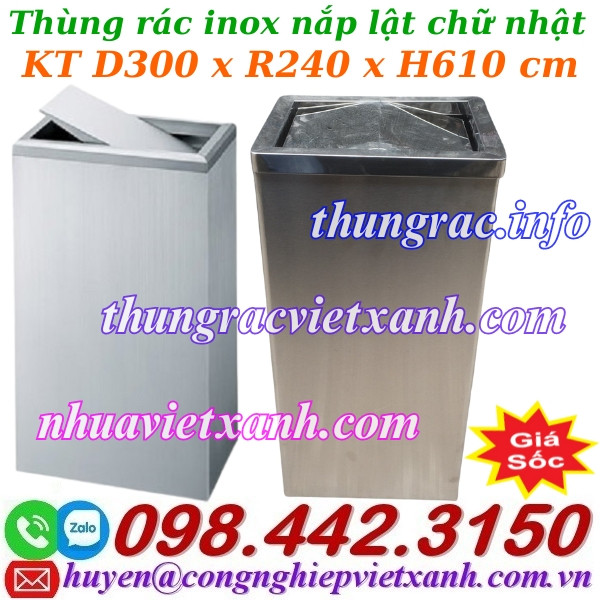 Thùng rác inox nắp lật chữ nhật 300x240x610mm