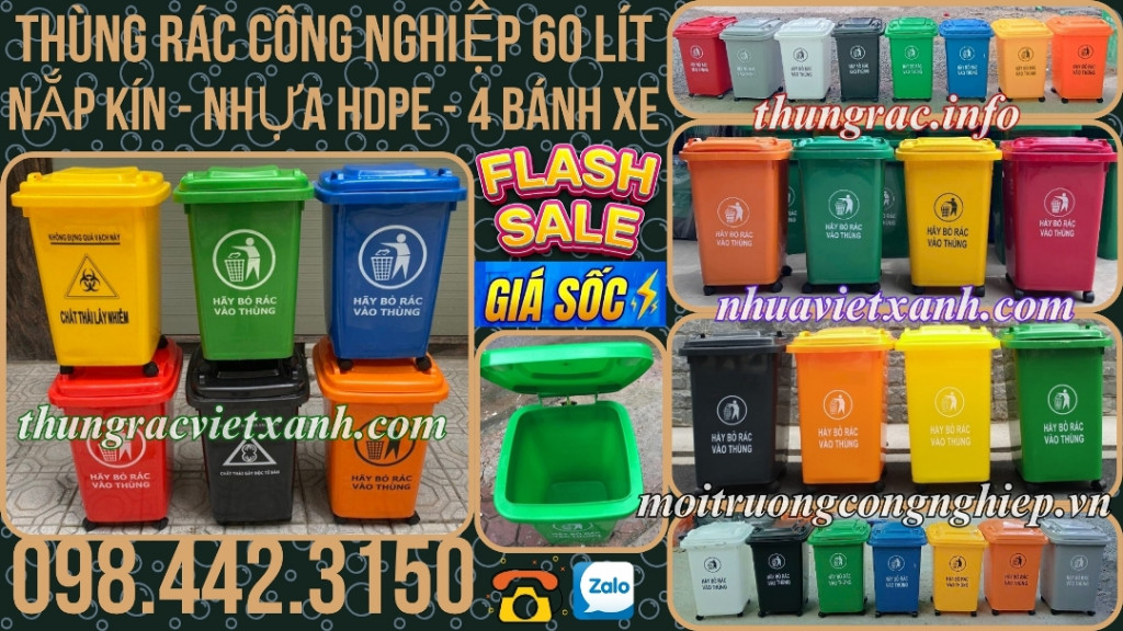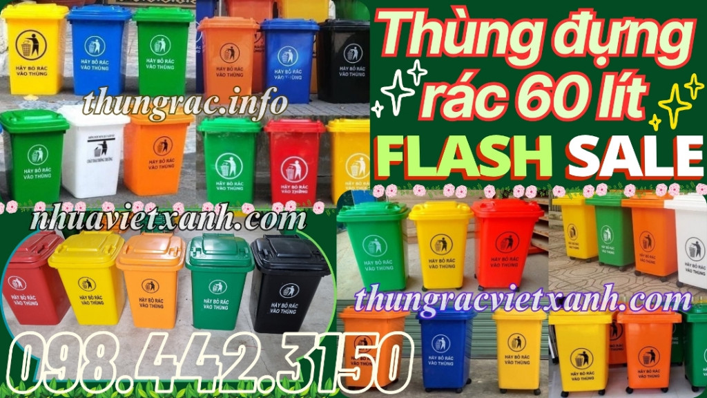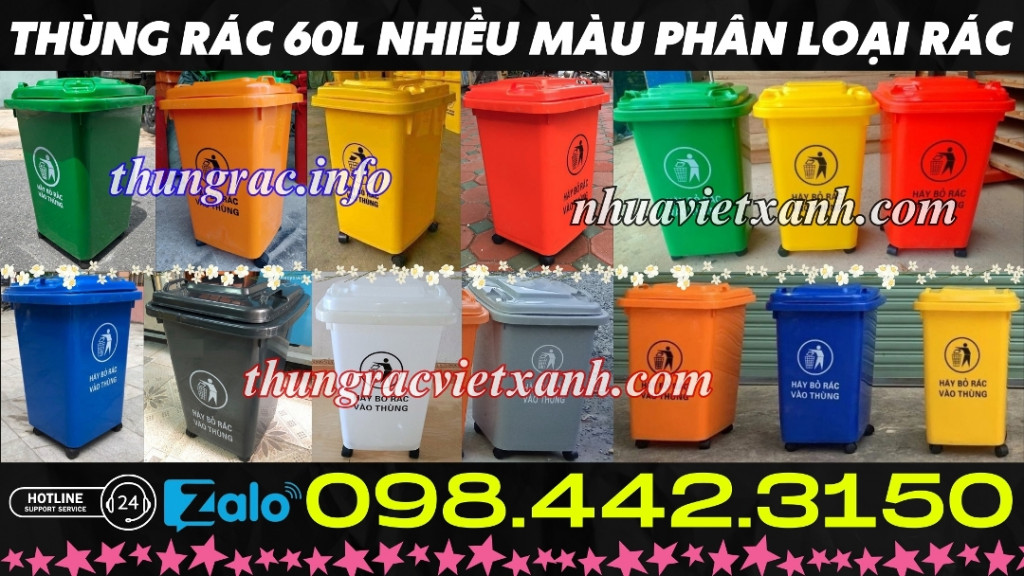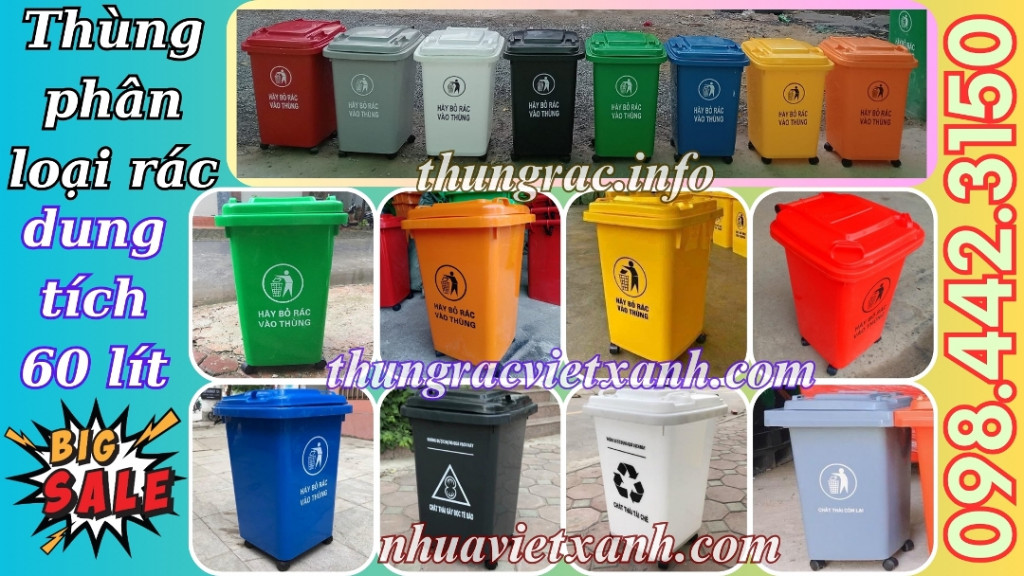 *. Thùng rác nhựa 60 lít - thùng đựng rác 60 lít - thùng chứa rác 60 lít - thùng rác nhựa 60 lít có bánh xe được sản xuất nhiều màu sắc nên phù hợp với việc phân loại rác tại nguuồn theo quy định trong hộ gia đình, khu chung cư, trường học, bệnh viện, trung tâm y tế, tòa nhà, văn phòng, nhà máy, nhà xưởng...