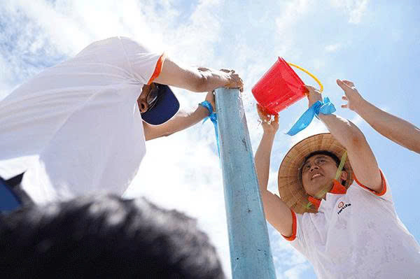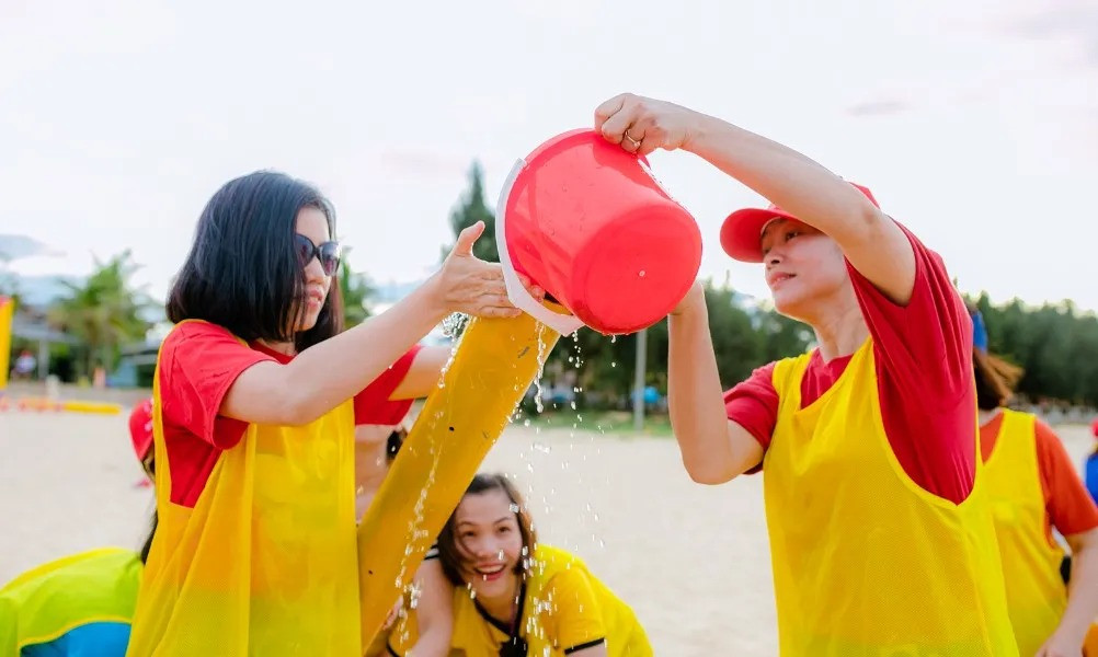 Trụ ống nhựa chơi team building …chơi trò chơi với nước