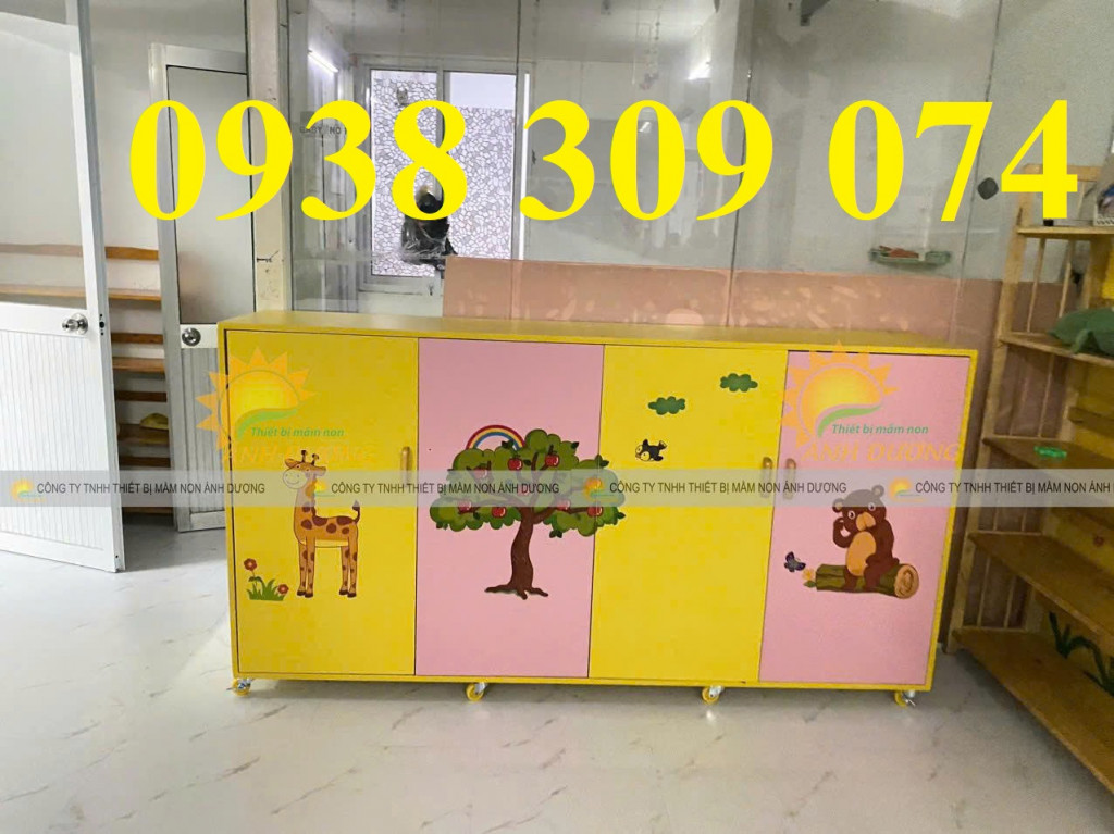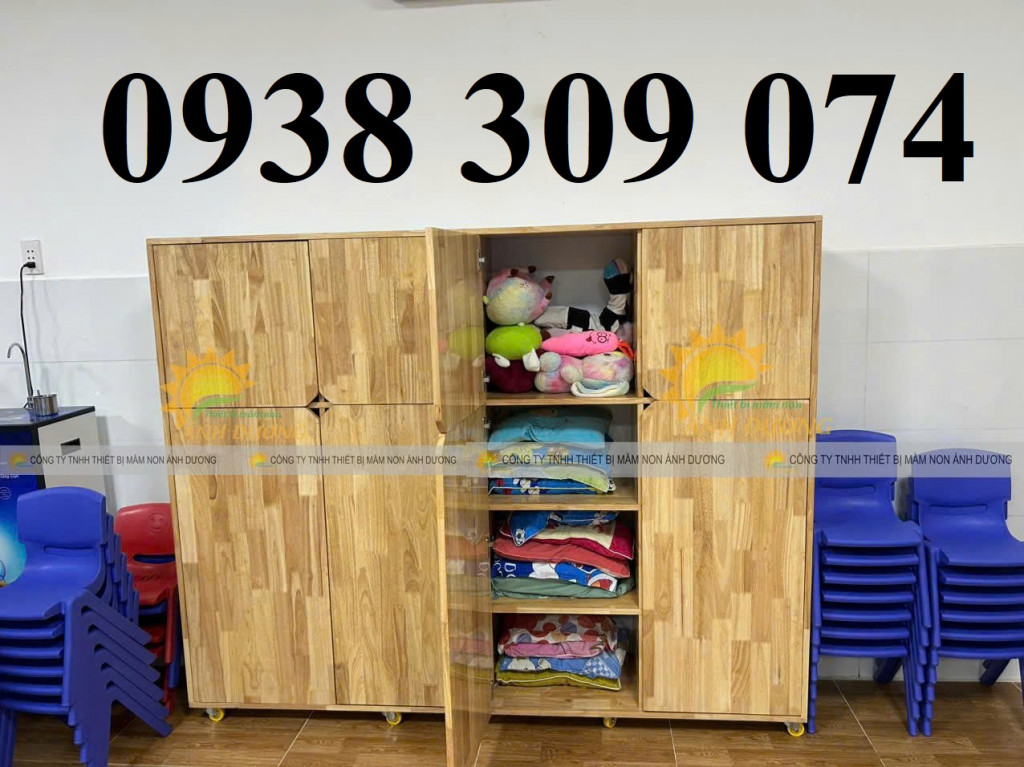 Tủ đựng chăn mền gối mầm non, tủ gỗ đựng mền gối mầm non