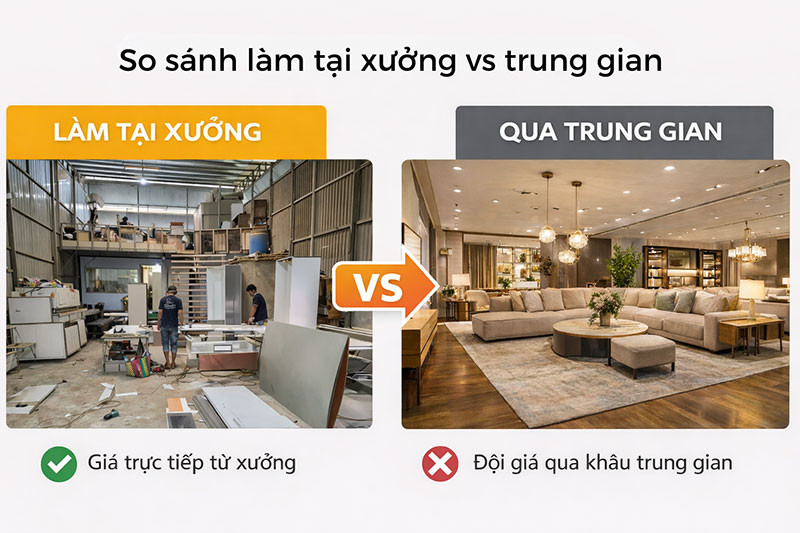 Khi chuẩn bị làm nội thất, nhiều người thường nghe câu: “Làm trực tiếp tại xưởng sẽ rẻ hơn”. Nhưng sự thật có đúng hoàn toàn không?