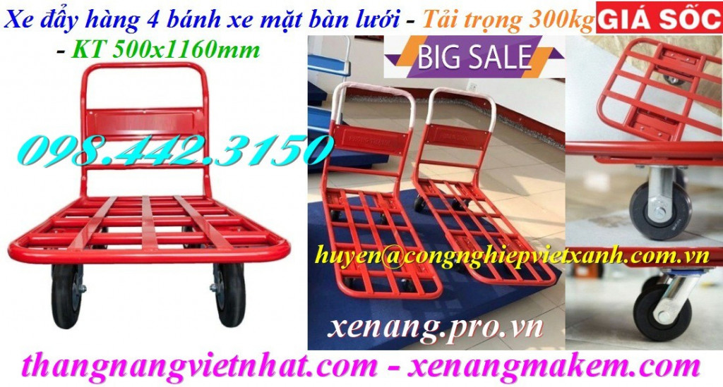 Xe đẩy hàng 300kg XTH130T và XTH130L giá rẻ call 0984423150 – Huyền
