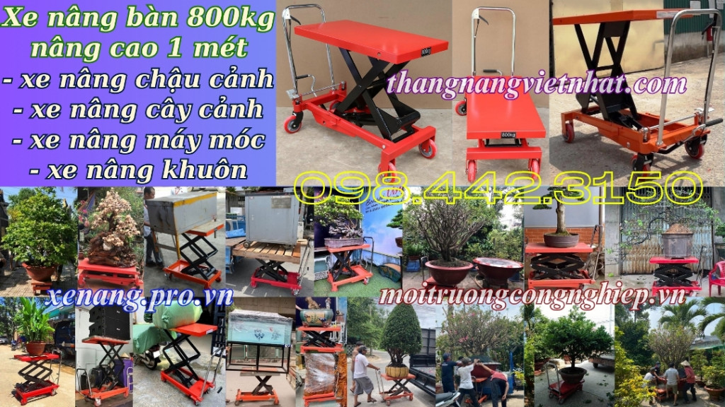 Xe nâng bàn 800kg nâng cao 1 mét với thiết kế nhỏ gọn kết hợp các bánh xe chịu lực giúp xe vừa nâng vừa di chuyển dễ dàng và cơ chế hoạt động mạnh mẽ có thể nâng tối đa tải trọng 800kg với chiều cao nâng cao nhất 1000mm nên xe nâng mặt bàn WP800 là sản phẩm được ưa chuộng và sử dụng rộng rãi trong các nhà vườn, vườn cây cảnh, nhà máy, xưởng sản xuất, kho hàng, bến bãi, siêu thị, cửa hàng...để nâng cây cảnh, chậu cảnh, chậu câu cảnh, hàng hóa, sản phẩm, máy móc, thiết bị, khuôn mẫu, thùng phuy, thùng loa, nguyên vật liệu...