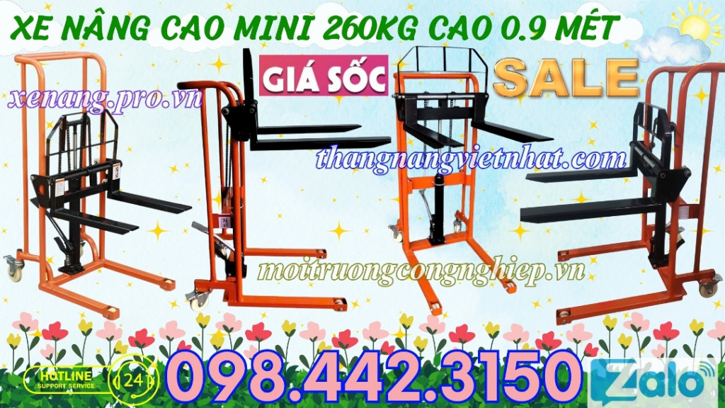 Xe nâng tay cao mini 260kg nâng cao 0.9 mét - xe nâng cao mini 260kg nâng cao 900mm - xe nâng tay cao 260kg nâng cao 90cm