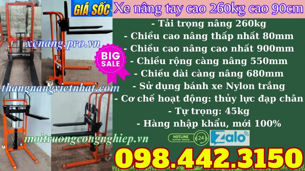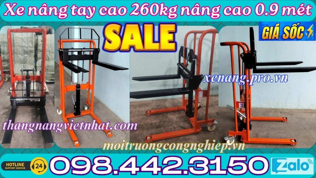 Trong kho bãi, siêu thị hay cửa hàng nhỏ việc nâng hạ hàng hóa an toàn và nhanh chóng là rất cần thiết, xe nâng tay cao mini 260kg nâng cao 900mm là lựa chọn lý tưởng. Sản phẩm xe nâng cao mini 260kg nâng cao 90cm giúp tiết kiệm thời gian, tăng năng suất và hỗ trợ di chuyển hàng hóa linh hoạt trong không gian hẹp.