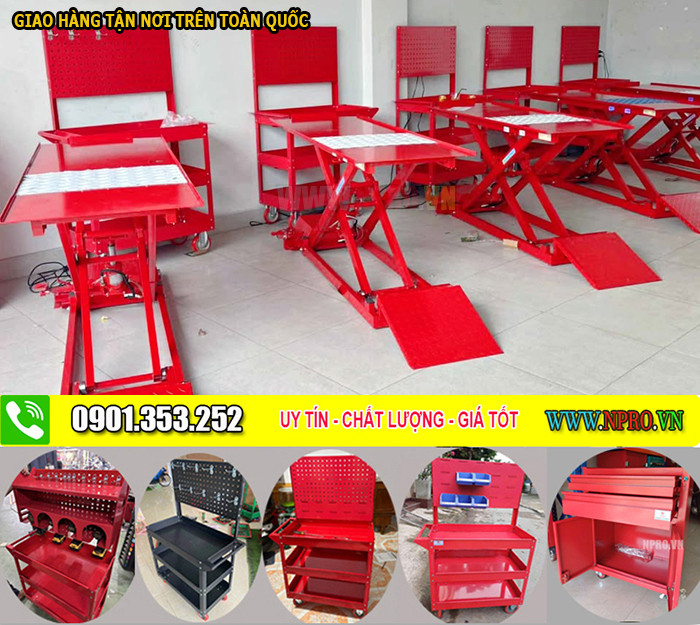 Bàn nâng xe máy là thiết bị hỗ trợ nâng hạ xe giúp kỹ thuật viên thao tác thuận tiện, giảm mỏi lưng và tăng độ an toàn khi sửa chữa. Hiện nay, các tiệm sửa xe ưu tiên sử dụng bàn nâng xe máy cơ, điện cơ và âm nền nhờ độ bền cao và hiệu quả làm việc vượt trội.