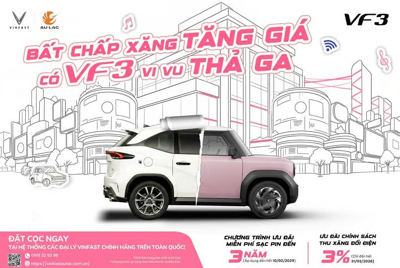 🔥 Giá xăng có thể tăng từng ngày… nhưng chi phí di chuyển của bạn thì không cần phải tăng theo! Với VinFast VF 3, bạn không chỉ sở hữu một chiếc xe – mà là một phong cách sống thông minh hơn, tiết kiệm hơn và hiện đại hơn