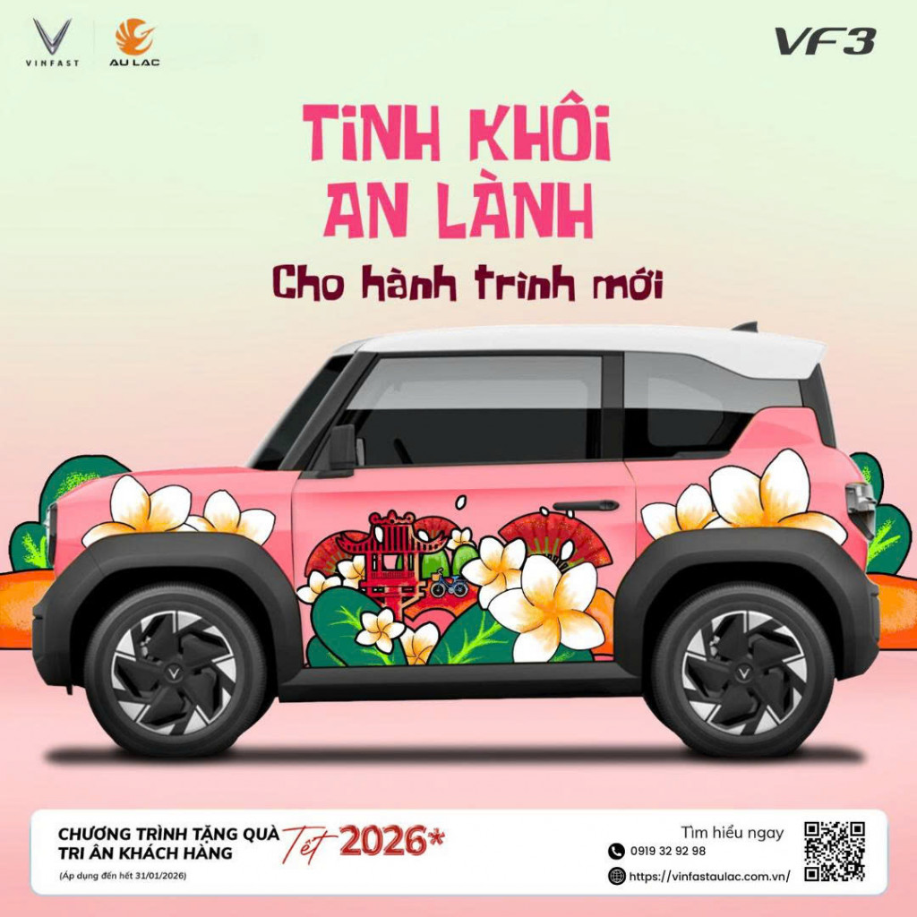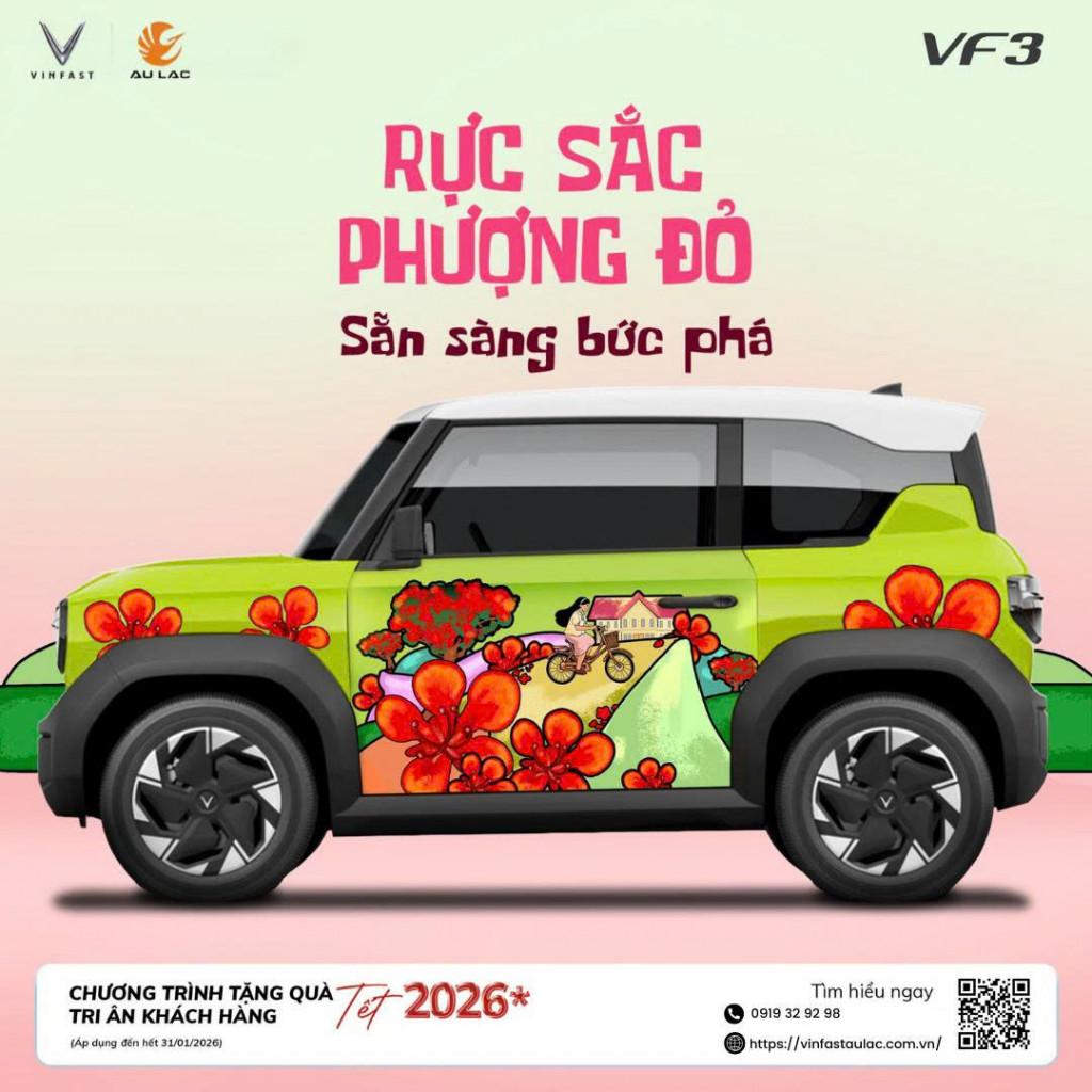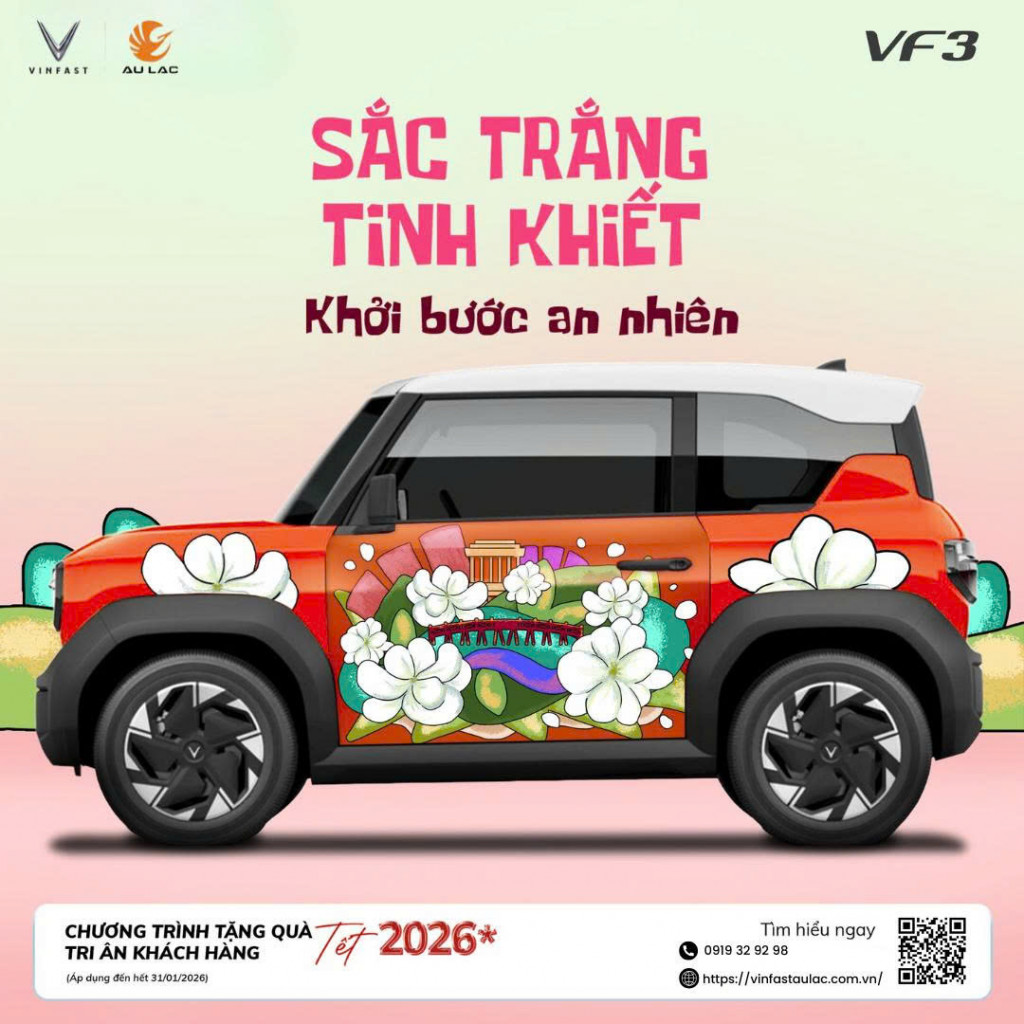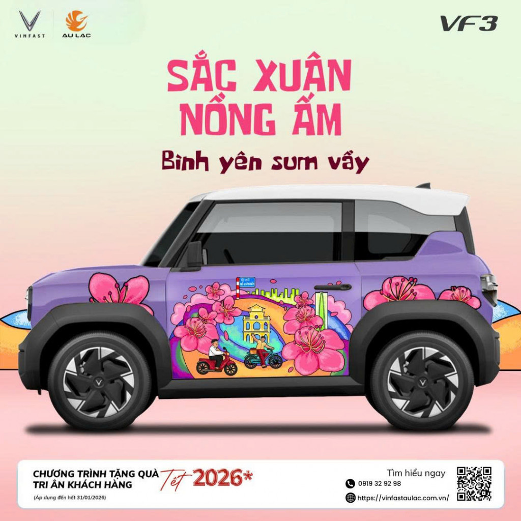 Bộ tem “Sắc Xuân Miền Bắc” biến VF 3 thành chiếc xe điện nhỏ gọn nhưng căng tràn năng lượng - nhìn là muốn xách chìa khóa lên và “đi chill” ngay lập tức.