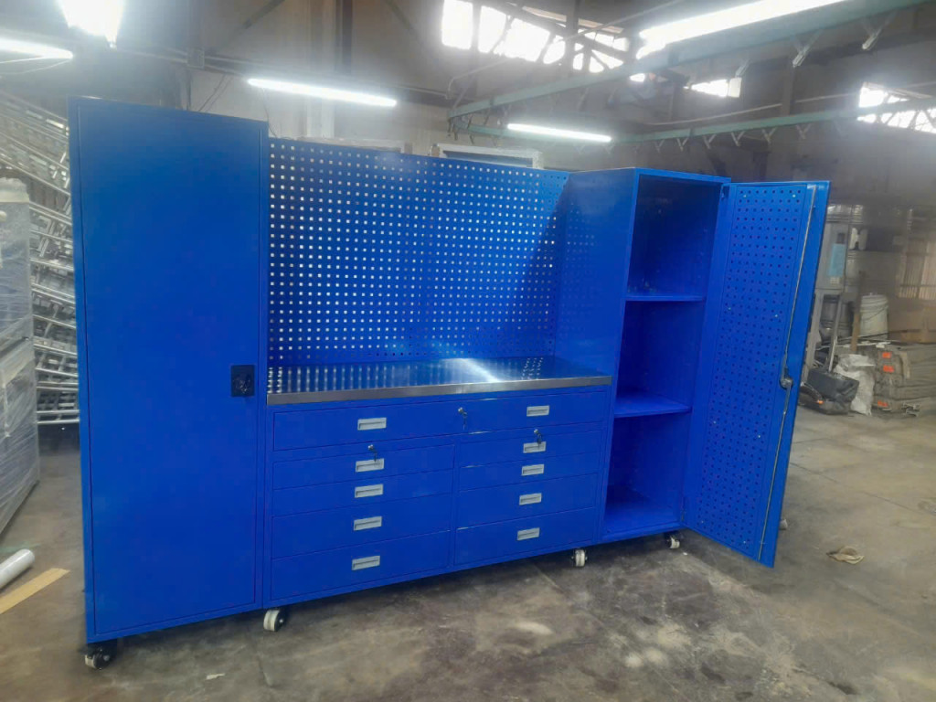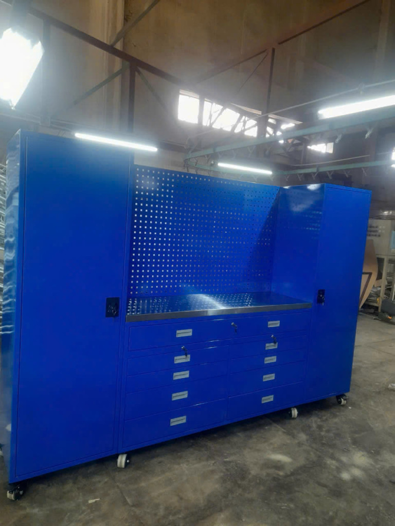 Bộ tủ đựng dụng cụ kết hợp, Tủ đồ nghề kết hợp bàn, Tủ đồ nghề sửa chữa ô tô đa năng. Đây là dòng tủ đựng đồ nghề sửa chữa ô tô với thiết kế gồm: tủ đồ nghề, bàn nguội cơ khí, bảng treo dụng cụ đa tiện ích. Tủ được sản xuất tại Việt Nam và được NPRO phân phối trên toàn quốc.