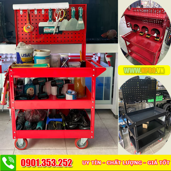 – Xe đẩy: Xe đẩy dụng cụ 3 ngăn, xe đẩy dụng cụ có ngăn kéo, xe đẩy dụng cụ có giá treo,..