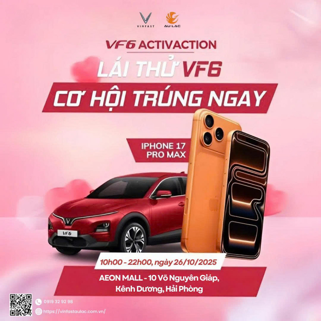 💫 𝐍𝐠𝐚̀𝐲 𝟐𝟔/𝟏𝟎/𝟐𝟎𝟐𝟓, 𝐕𝐢𝐧𝐅𝐚𝐬𝐭 𝐀̂𝐮 𝐋𝐚̣𝐜 mời bạn đến AEON Mall Hải Phòng để trải nghiệm trọn vẹn VF6 – mẫu SUV điện nhỏ gọn, mạnh mẽ, công nghệ dẫn đầu phân khúc.