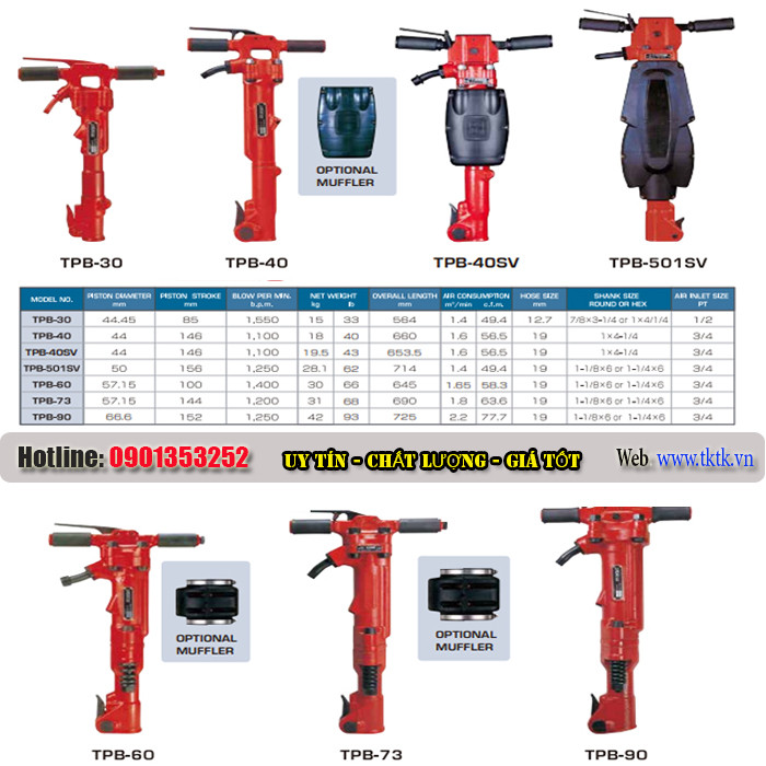 Toku là thương hiệu nổi tiếng của Nhật Bản trong ngành thiết bị công trình khí nén. Các dòng máy đục bê tông Toku (TPB Series) được đánh giá cao nhờ: