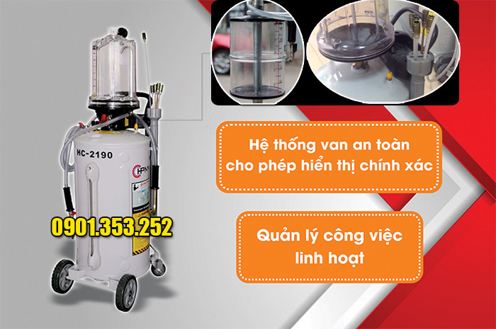 Bình hút dầu thải HC-2190 là thiết bị chuyên dùng trong gara ô tô – xe máy, giúp hút dầu nhớt cũ nhanh chóng, sạch sẽ và an toàn.