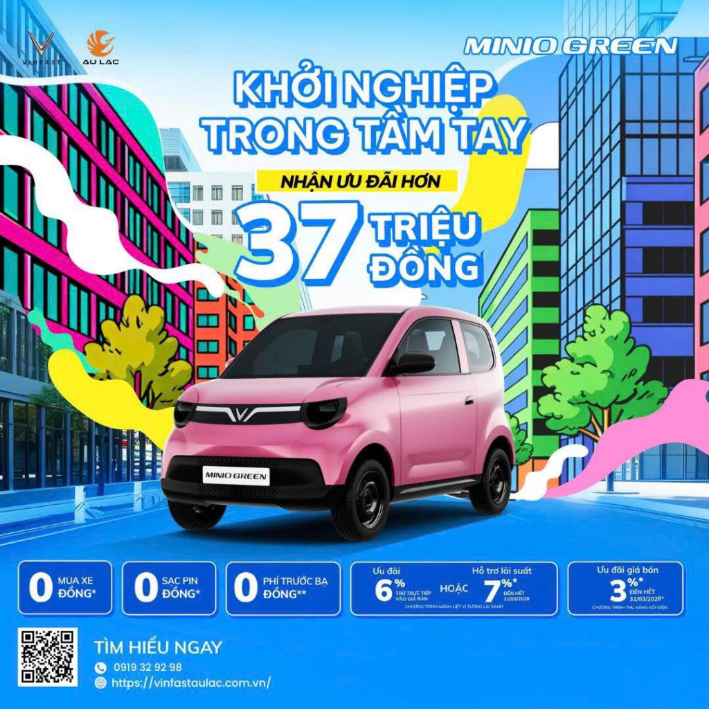 Cơ hội sở hữu Mini Green dễ dàng với tổng giá trị ưu đãi hơn 37 triệu đồng(*), từ các chương trình “Thu Xăng – Đổi Điện” và “Mãnh Liệt Vì Tương Lai Xanh”, giúp việc chuyển đổi trở nên thuận tiện hơn, tiết kiệm chi phí.