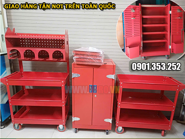 • 1 ngăn cánh mở có kệ chia tầng: Dành cho các thiết bị lớn hơn như máy bắn ốc, bình đo áp, dụng cụ điện tử…